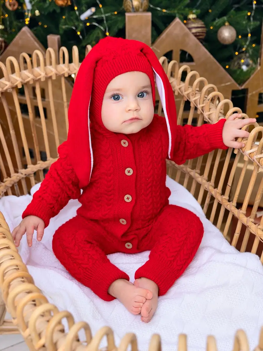 Комбинезон Little Star с капюшоном Зайчонок красный 74 0-3 мес