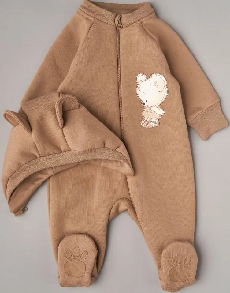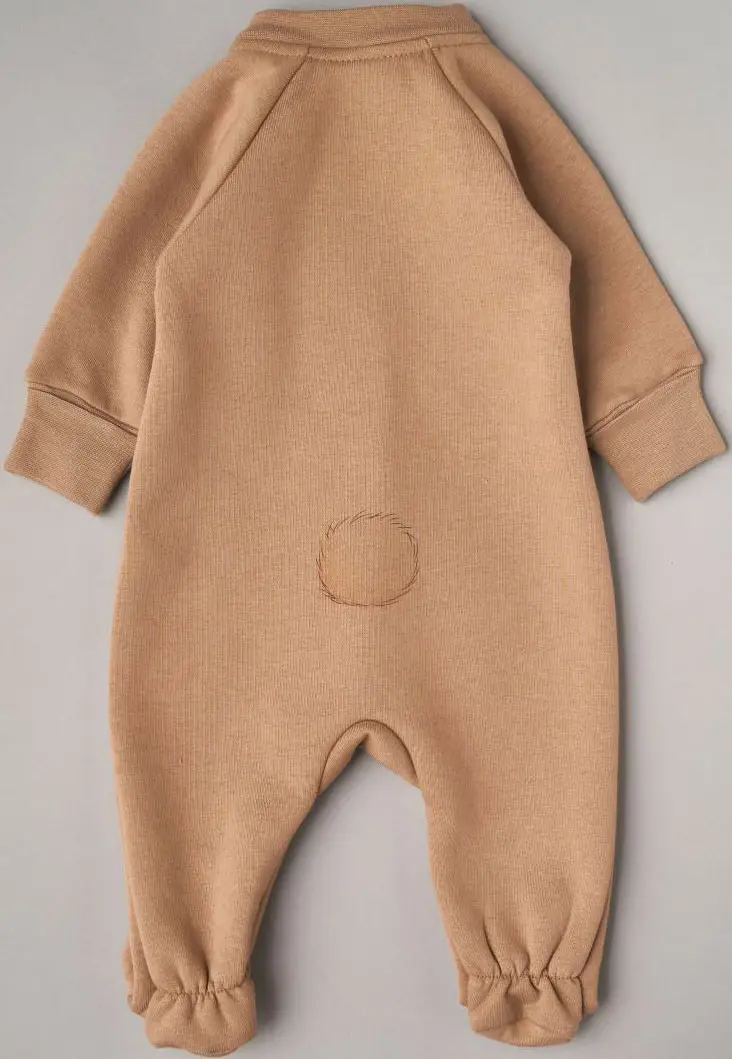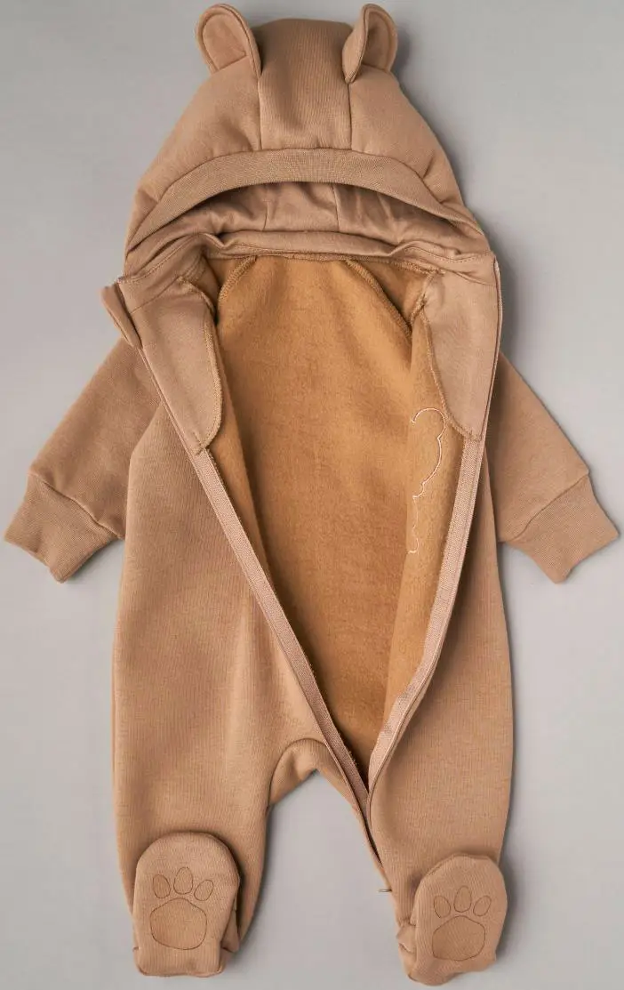 Комбинезон Little Star с отстегивающимся капюшоном футер с начесом "Мишка Малыш", бежевый, р.62
