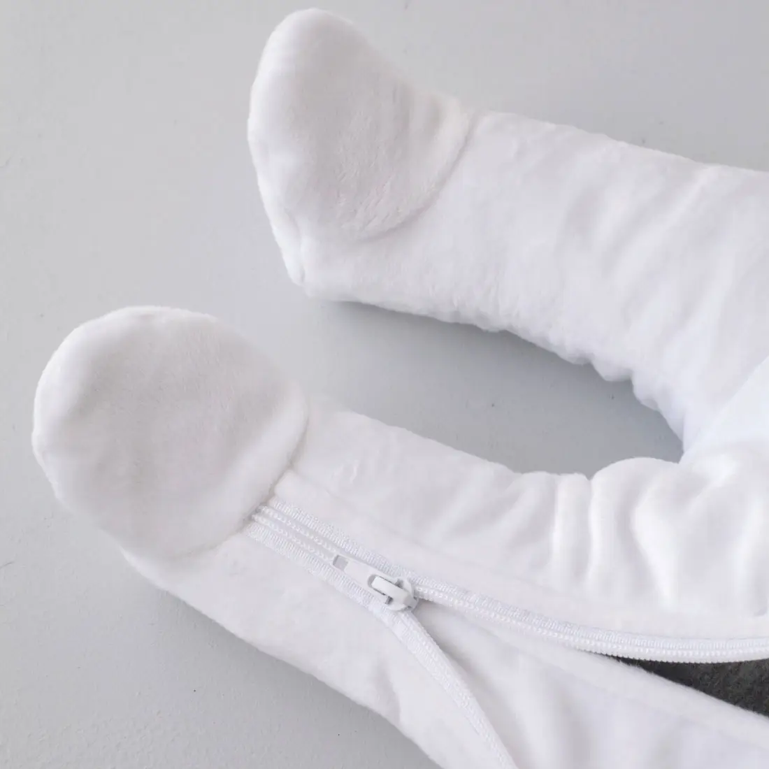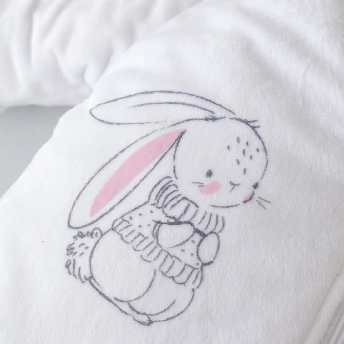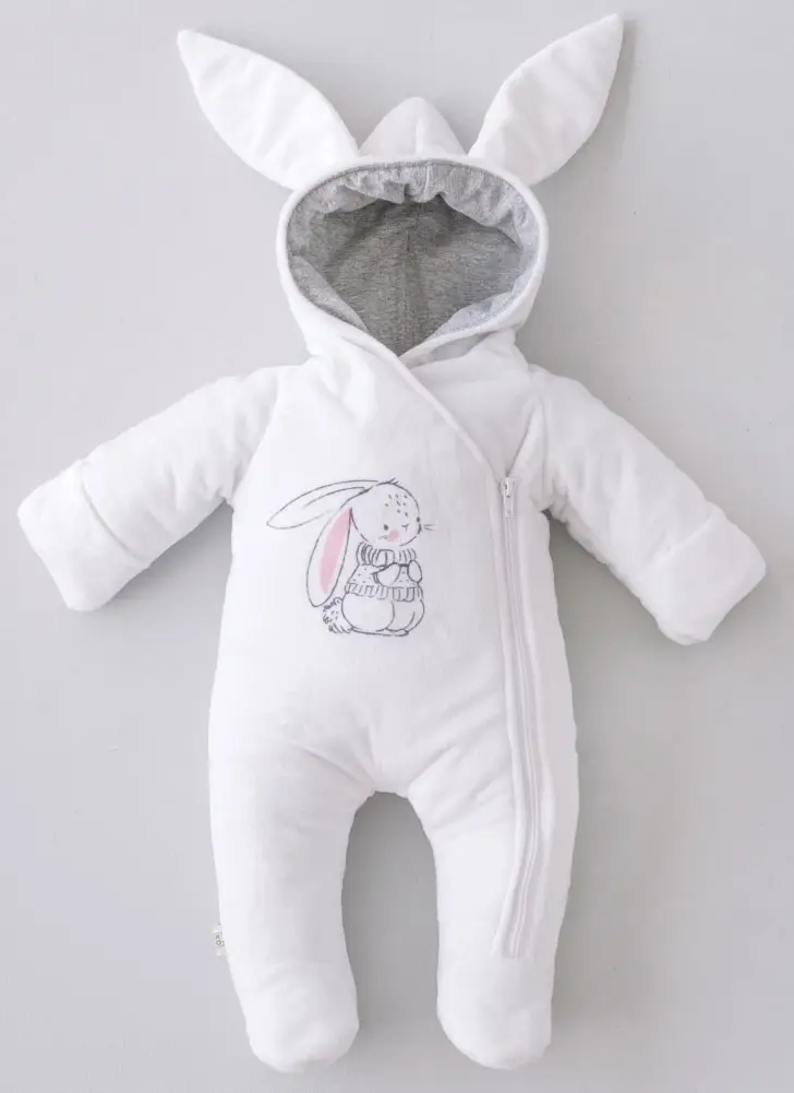 Плюшевый комбинезон Новый Зайкин от бренда KiDi kids с ушками на капюшоне и принтом на грудке и спинке. Отвороты на рукавах позволят спрятать ручки от ветра. Ножки закрыты.