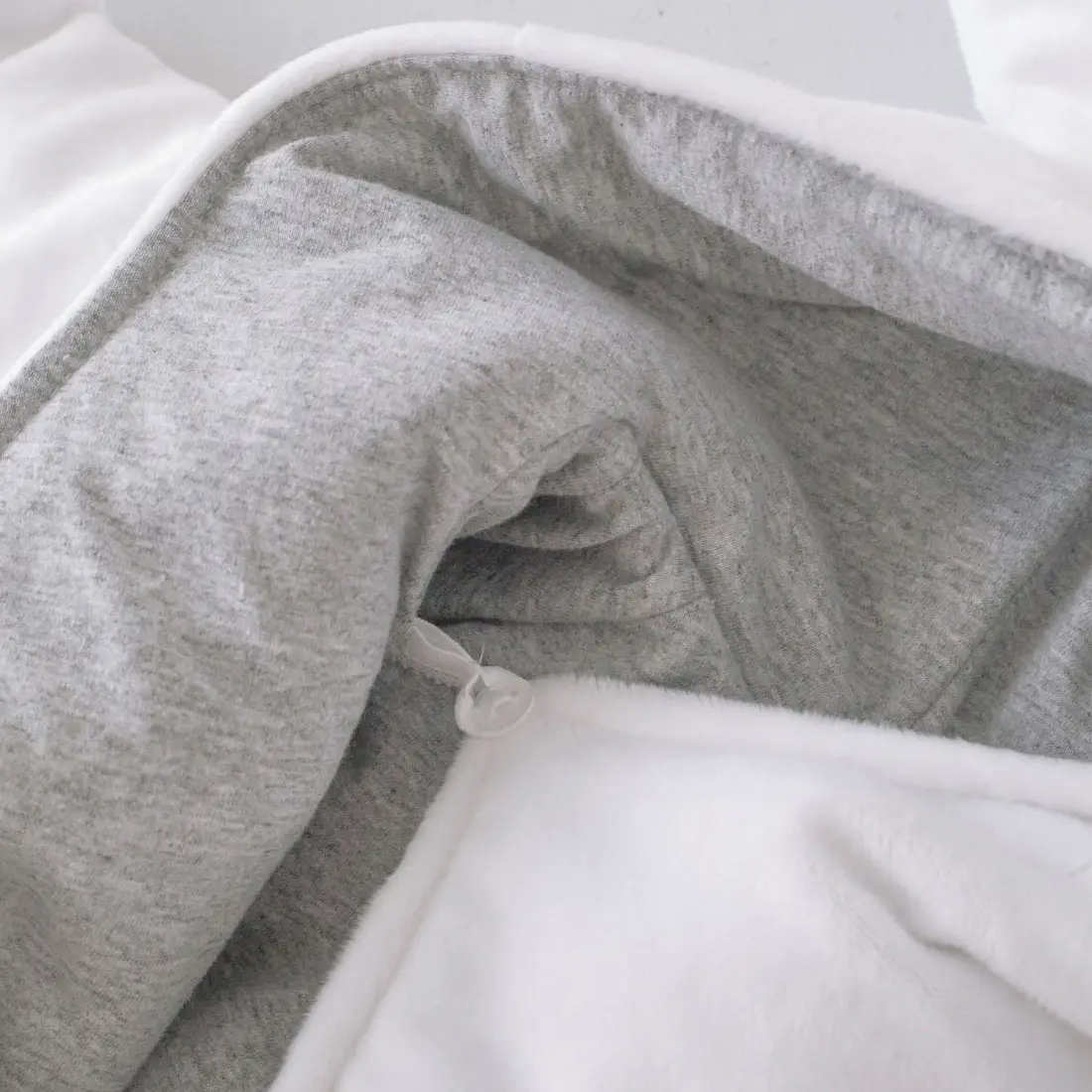 Плюшевый комбинезон Новый Зайкин от бренда KiDi kids с ушками на капюшоне и принтом на грудке и спинке. Отвороты на рукавах позволят спрята...