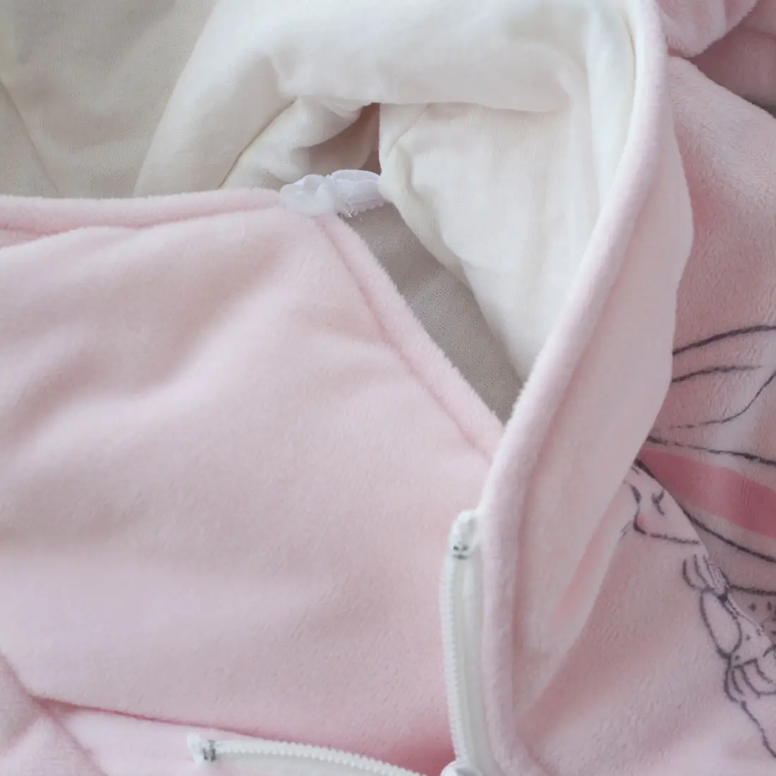 Плюшевый комбинезон Новый Зайкин от бренда KiDi kids с ушками на капюшоне и принтом на грудке и спинке. Отвороты на рукавах позволят спрята...