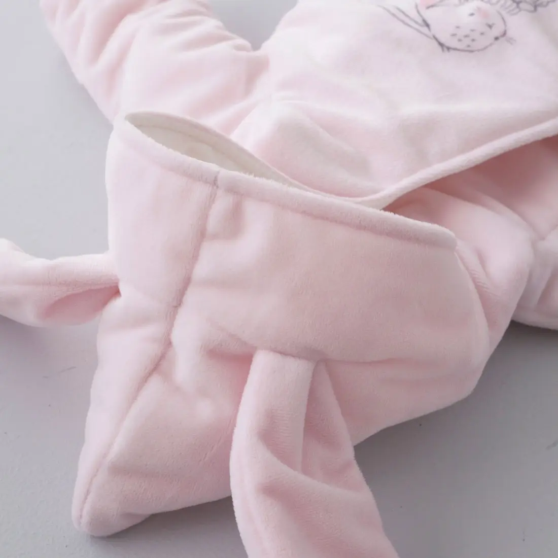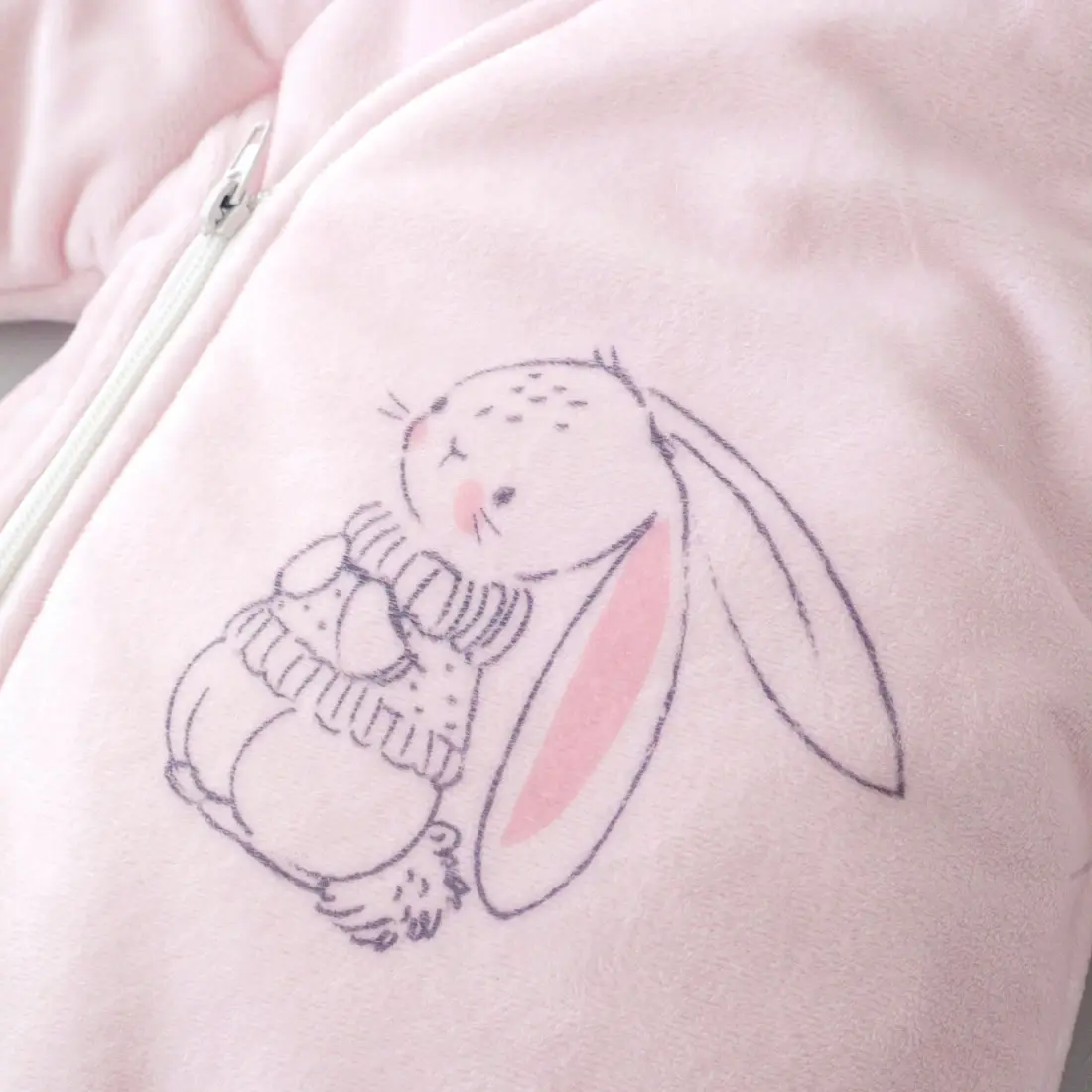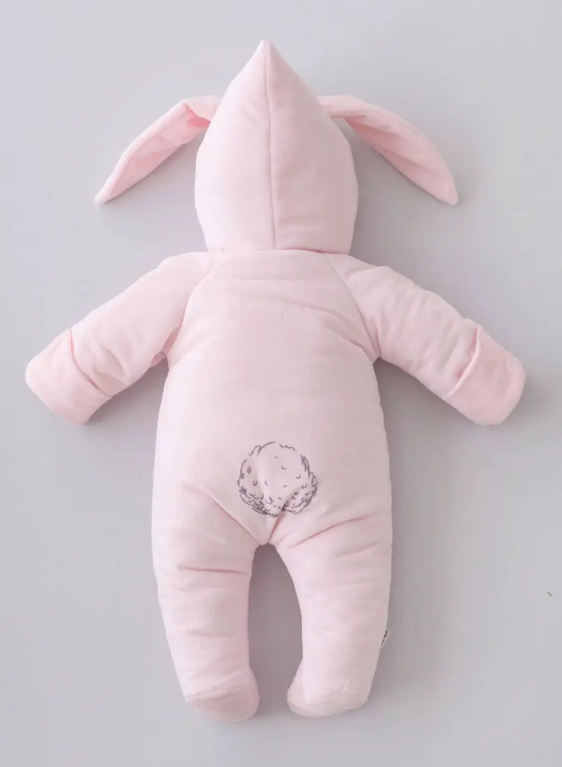 Плюшевый комбинезон Новый Зайкин от бренда KiDi kids с ушками на капюшоне и принтом на грудке и спинке. Отвороты на рукавах позволят спрятать ручки от ветра. Ножки закрыты.
