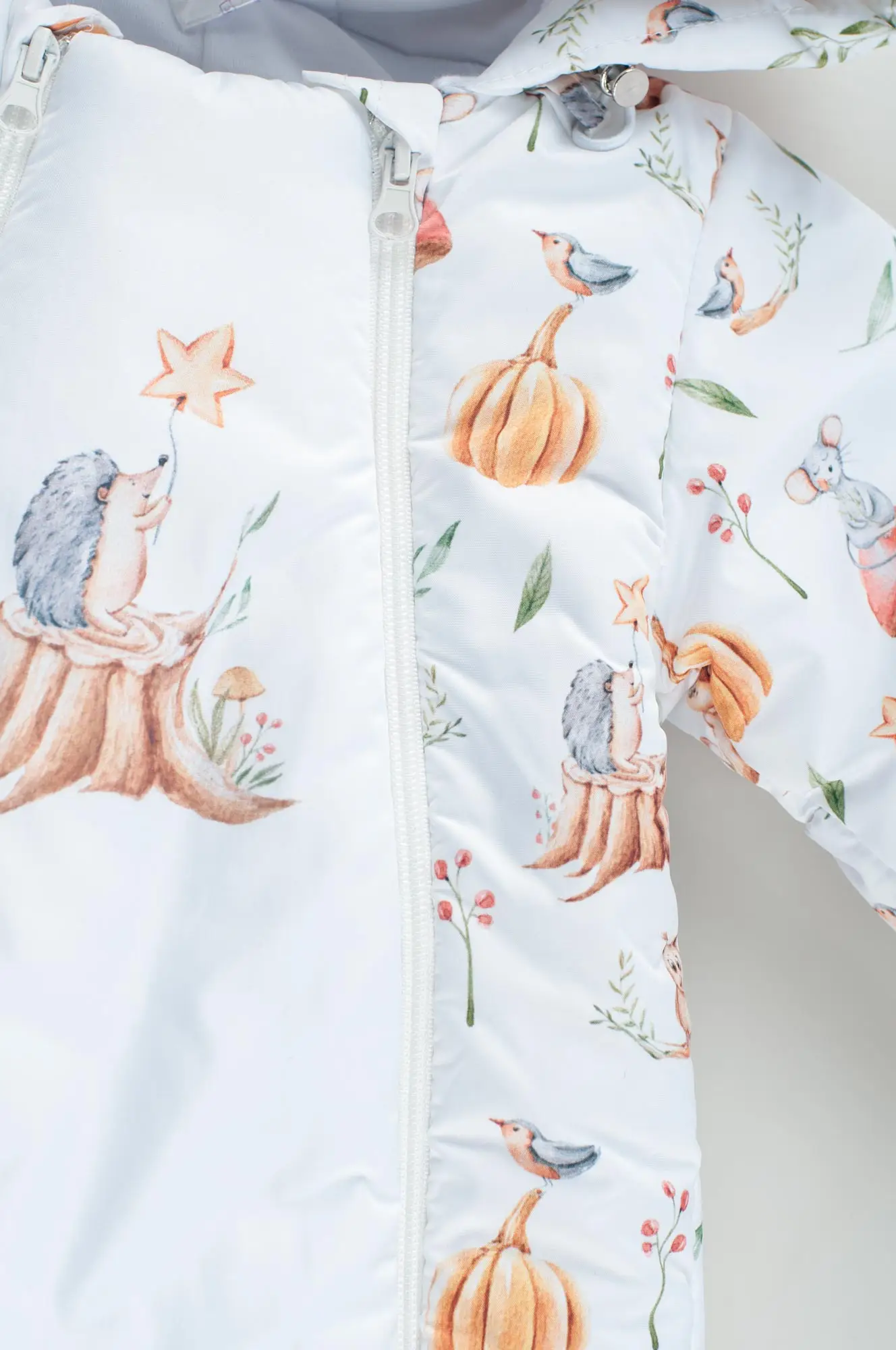 Комбинезон утеплёный Ёжик с шариком Luxury Baby с милым принтом. Капюшон со вшитой резинкой плотно прилегает к голове, защищая лицо малыш...