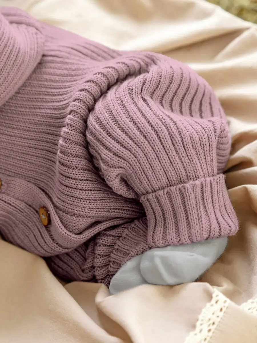 Детский вязаный комбинезон с шапочкой Amarobaby изготовлен из мягкого, эластичного материала. Комбинезон не выгорает и не теряет цвет после стирок.