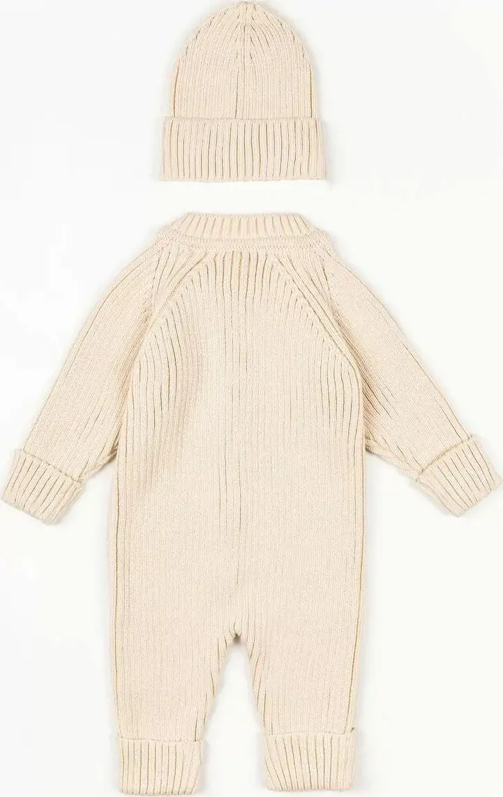 Комбинезон вязаный детский с шапочкой Amarobaby Pure Love Tot, размер 74, демисезонный, молочный