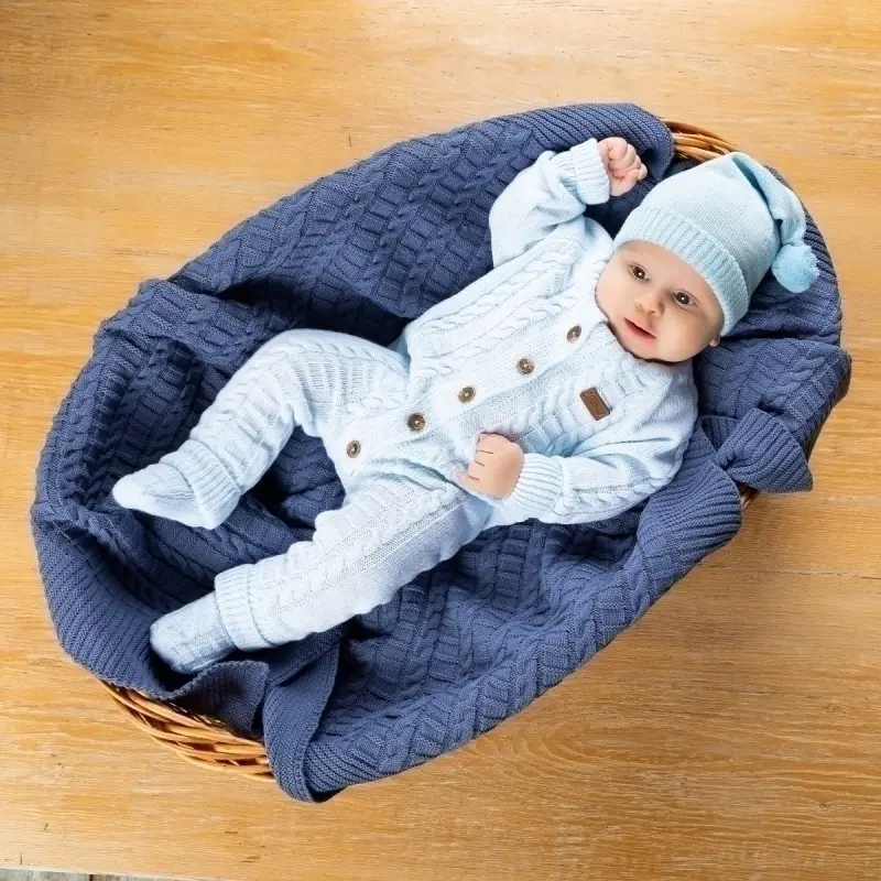 Комбинезон вязаный Merino голубой меланж размер 62