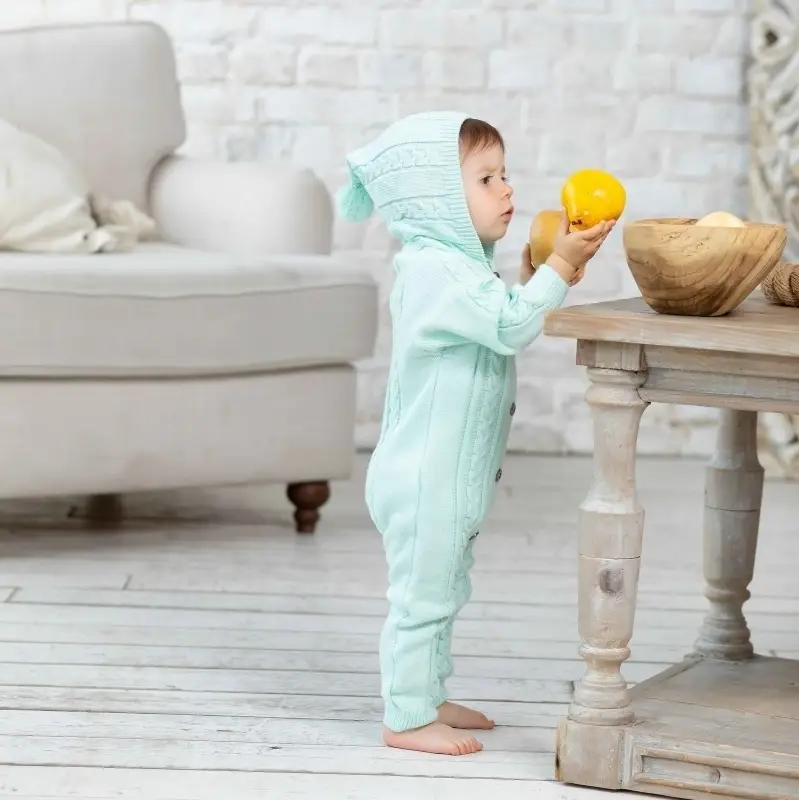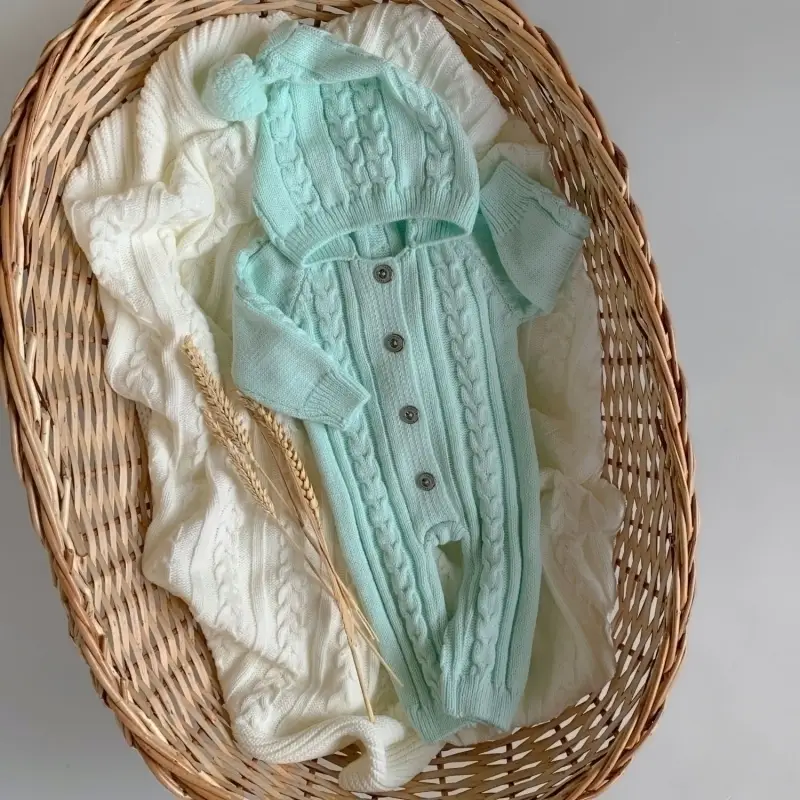 Комбинезон вязаный с капюшоном Little Star Араны мятный 74