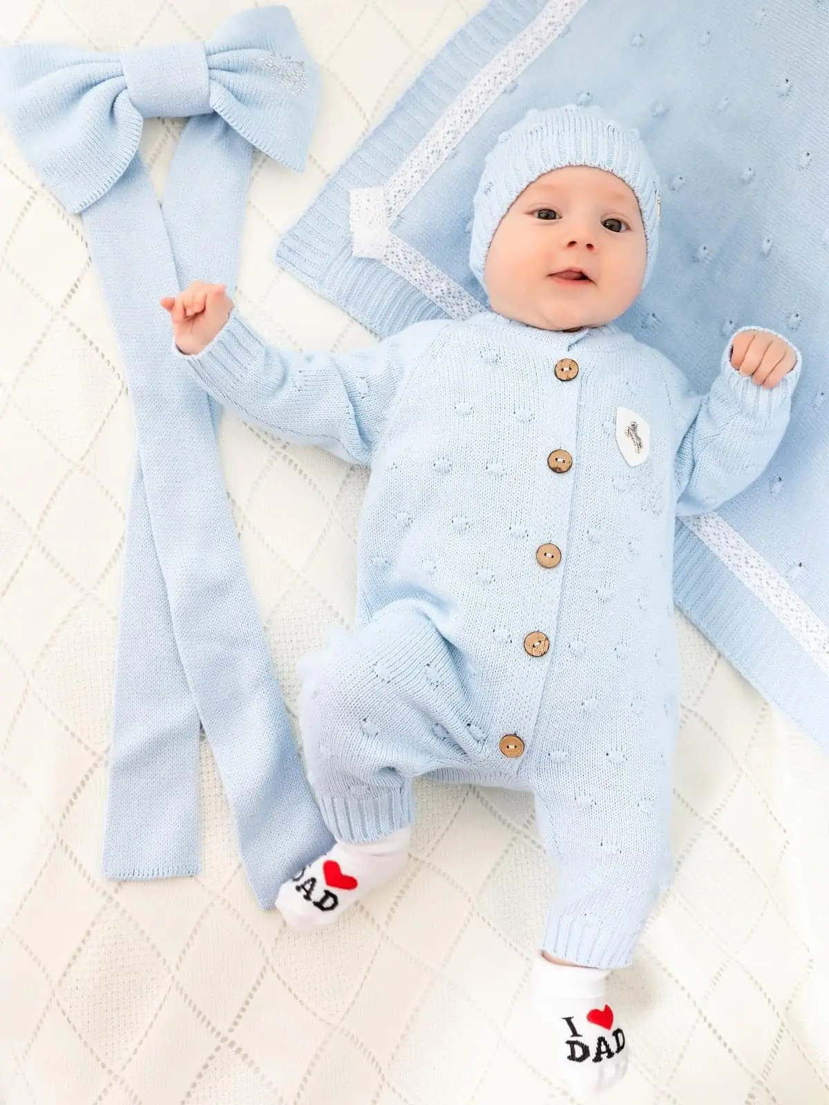 Вязаный комплект Luxury Baby Комбинезон и шапочка голубой 62-68 см