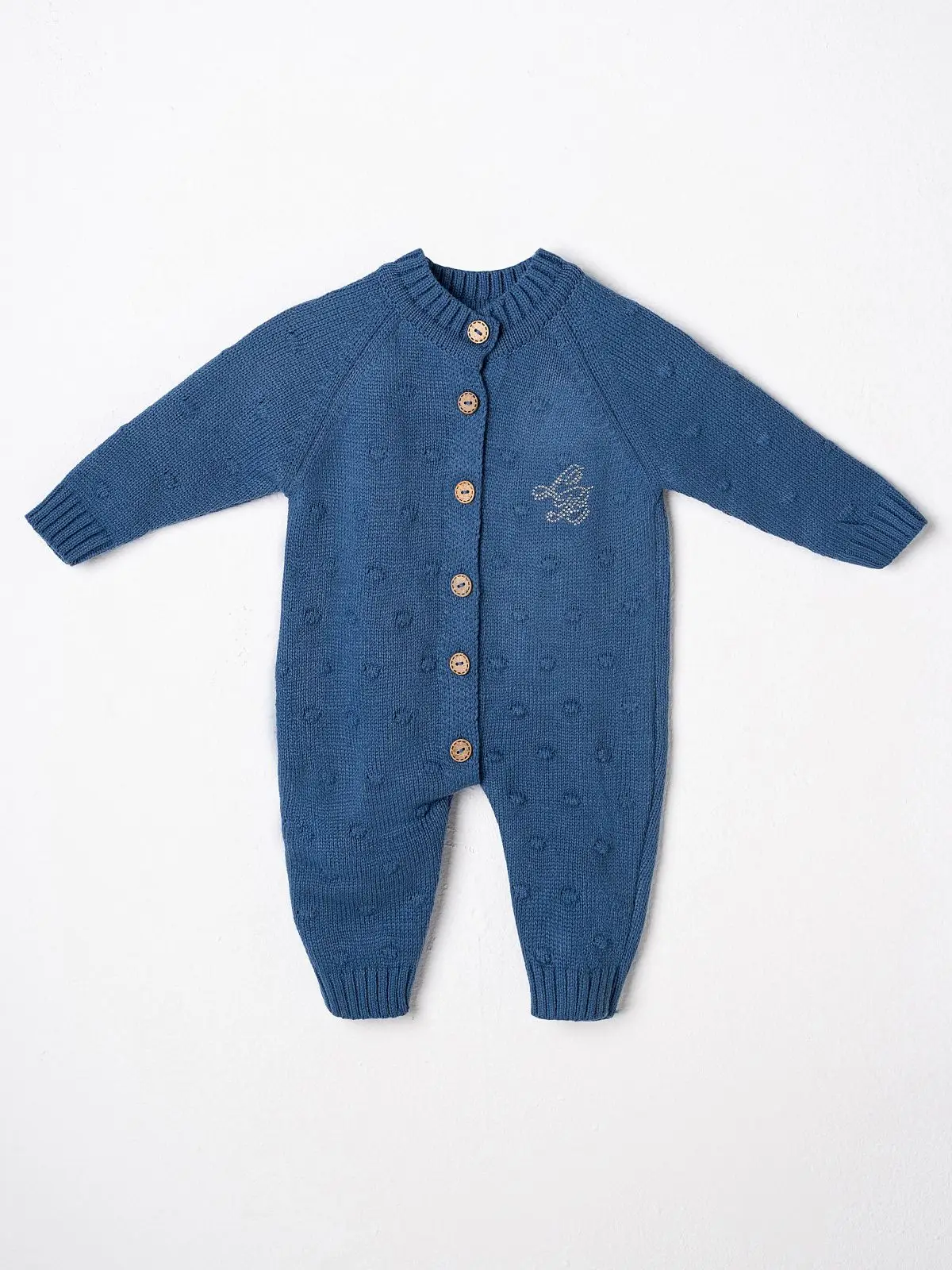 Вязаный комплект Luxury Baby Комбинезон и шапочка синий 68-74 см
