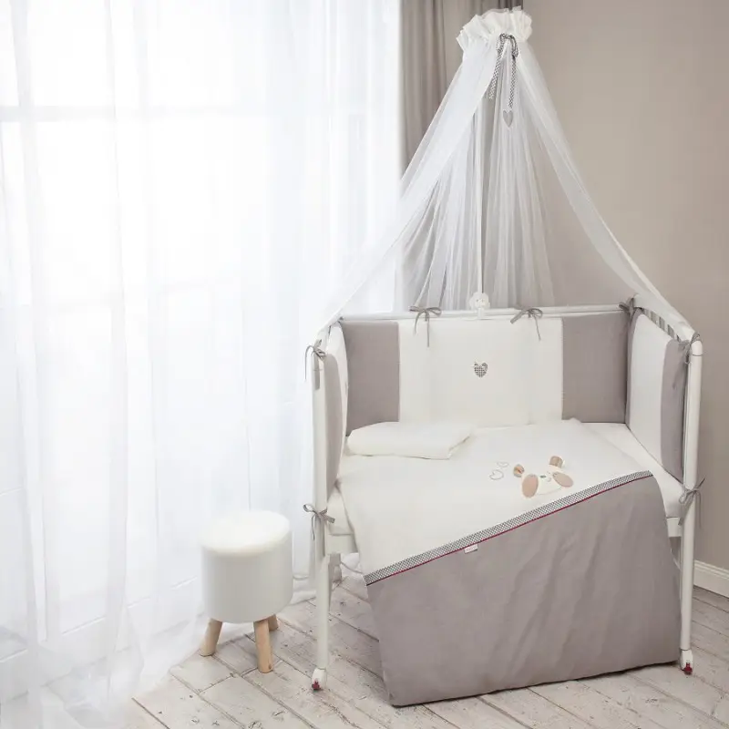 - лёгкий балдахин полностью накрывает детскую кроватку;