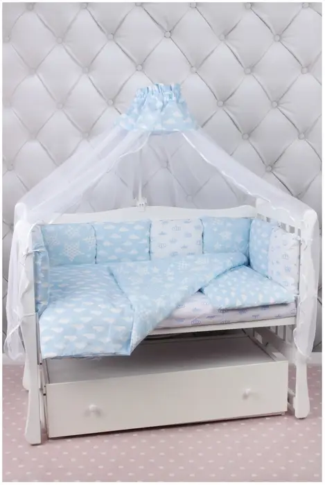 Комплект бортиков в кроватку от AmaroBaby создан не только дял украшения кроватки но и для специально для безопасности малыша.