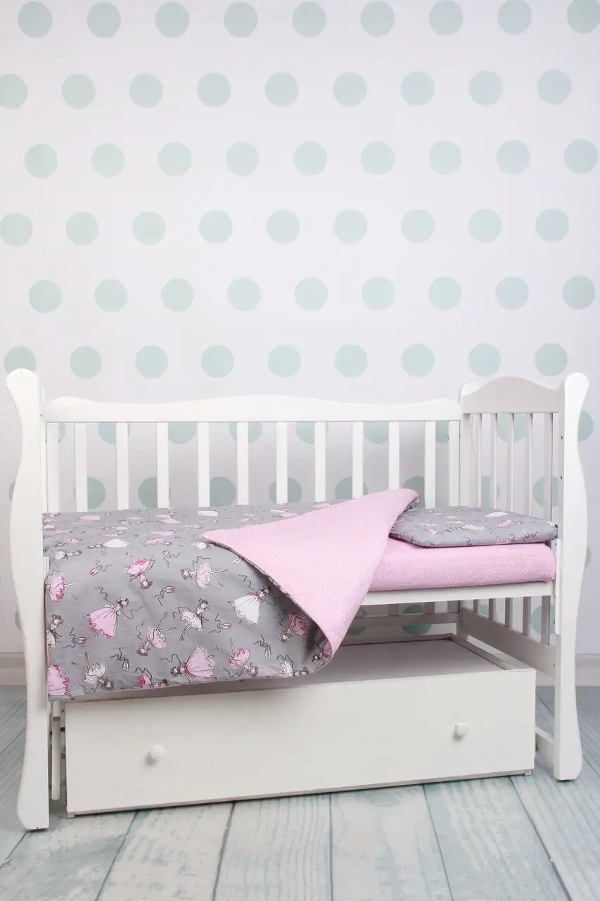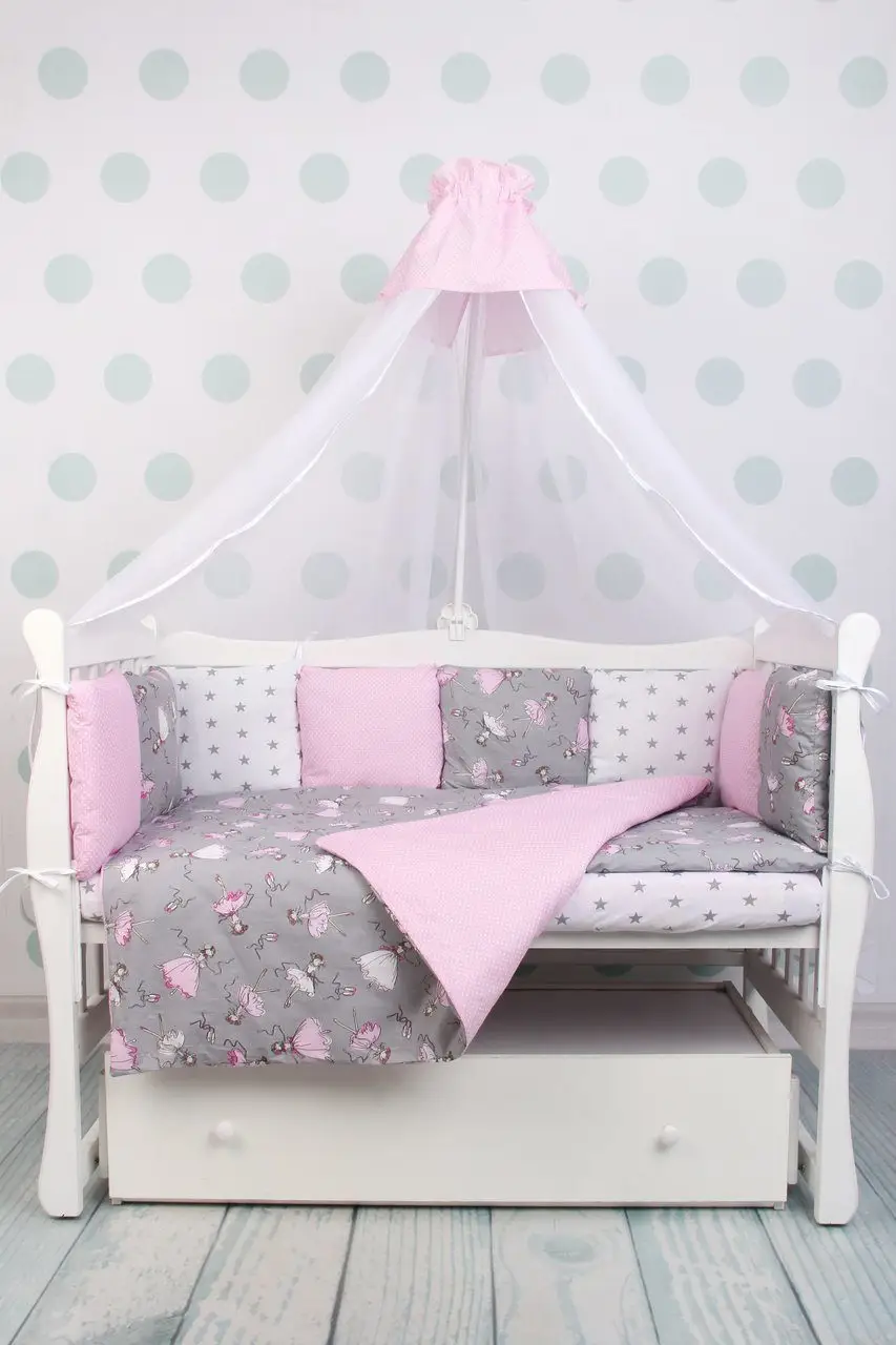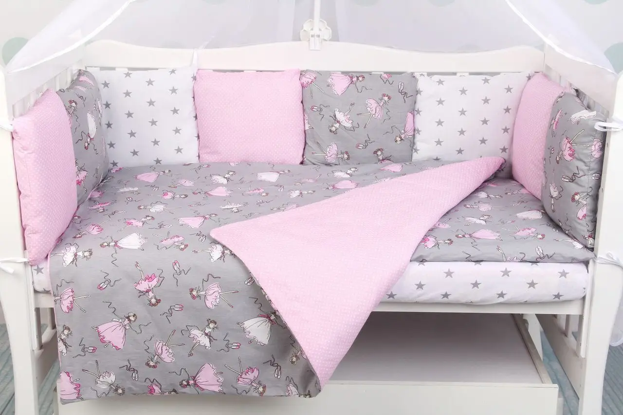 Бортик в кроватку 12 предметов AmaroBaby Мечта серый, розовый, поплин/бязь