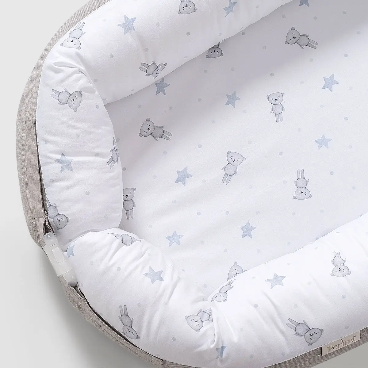 Кокон-гнездышко помогает адаптироваться к новому миру, а еще поддерживает физиологичное положение тела ребёнка. Универсальные расцветки позволяют выбрать вариант на любой вкус, а современный дизайн подойдет в любой интерьер. Кокон-гнездышко отлично помещается в стандартную кроватку, удобно для переноски, а его размер оптимален для комфортного сна малыша. Матрас внутри гнёздышка Perina комбинированный: из натуральной кокосовой койры и гипоаллергенного Холлкона. Благодаря жесткой основе при переноске матрас не прогибается и хорошо держит форму, а значит, спинка малыша останется в правильном положении. Чехол гнёздышка съемный, на молнии. Вы легко можете достать как матрасик, так и наполнитель бортика и постирать чехол. Молнии в чехле вшиты особым образом, чтобы ребёнок не смог дотянуться до них и случайно защемить пальчик. Прочная застежка для безопасности ребенка. Надежна, удобна и проста в использовании.