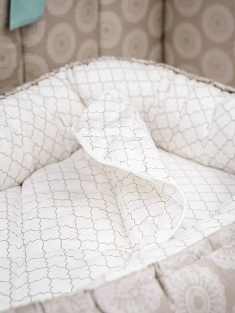 Подушка-гнездышко из коллекции "Ривьера" создана для комфорта и безопасности вашего малыша. Находясь в коконе, малыш чувствует себя максимально удобно.