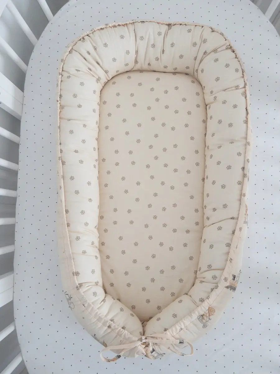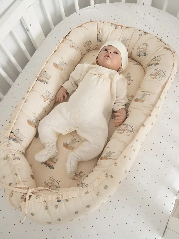 Подушка-гнездышко Lappetti «Письмо другу» 4133 предназначена для новорожденных. Она имеет толстые мягкие бортики, которые фиксируются шнурком. Развязав его, можно разложить бортики, преобразовав подушку в пеленальный матрасик для пеленального столика размерами 100х60 см.