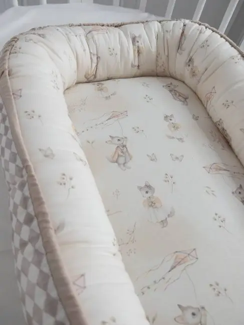 Cоздана для комфорта и безопасности вашего малыша. Находясь в коконе, малыш чувствует себя максимально удобно. При этом он спокойно засыпает в кроватке с маятником, на руках у мамы или в родительской постели. Подушка-гнездышко выполнена из высококачественного поплина европейского качества и украшена эксклюзивным дизайном. Первоначально ее можно использовать с завязанными бортиками, а развязав и разложив их, вы получите матрасик для пеленального столика размером 100х60 см.