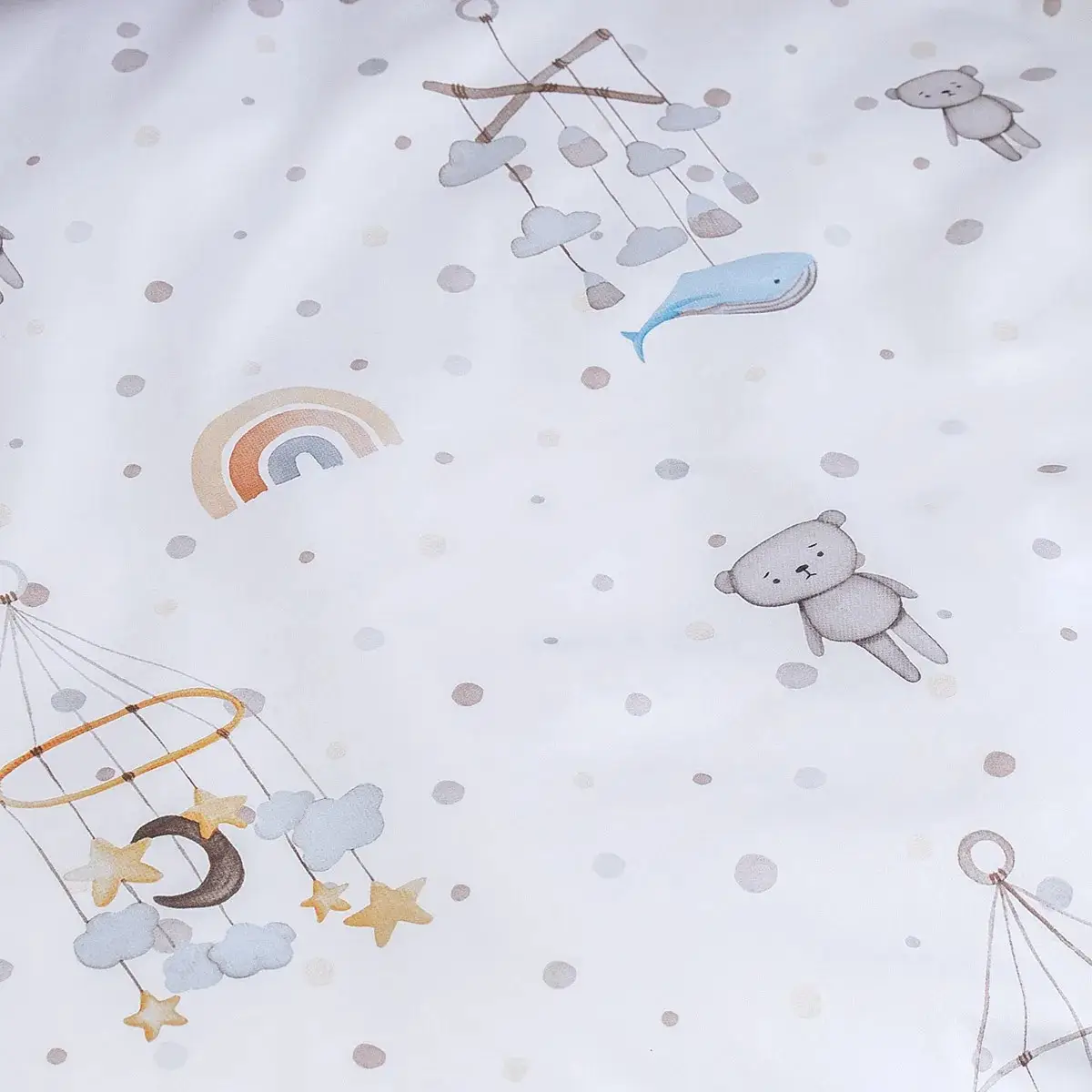 Комплект Kiddy перед сном убаюкает малыша спокойными оттенками, после пробуждения встретит нежным прикосновением сатина.