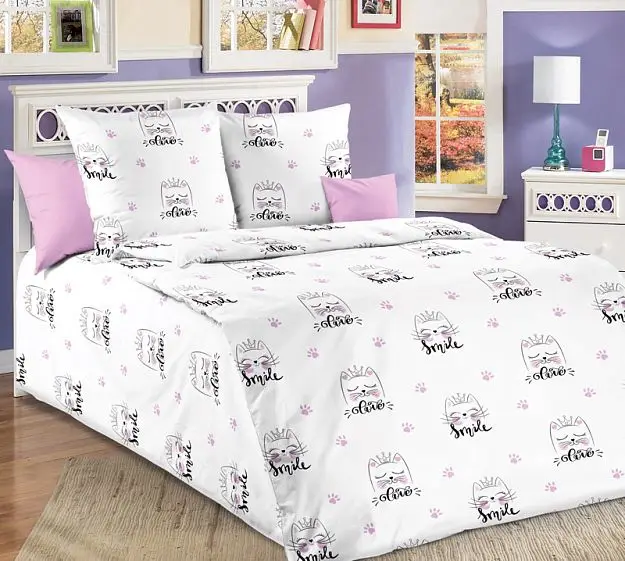 Комплект постельного белья Китти 1 Текс Дизайн 1,5 спальное, 2 наволочки, перакль
