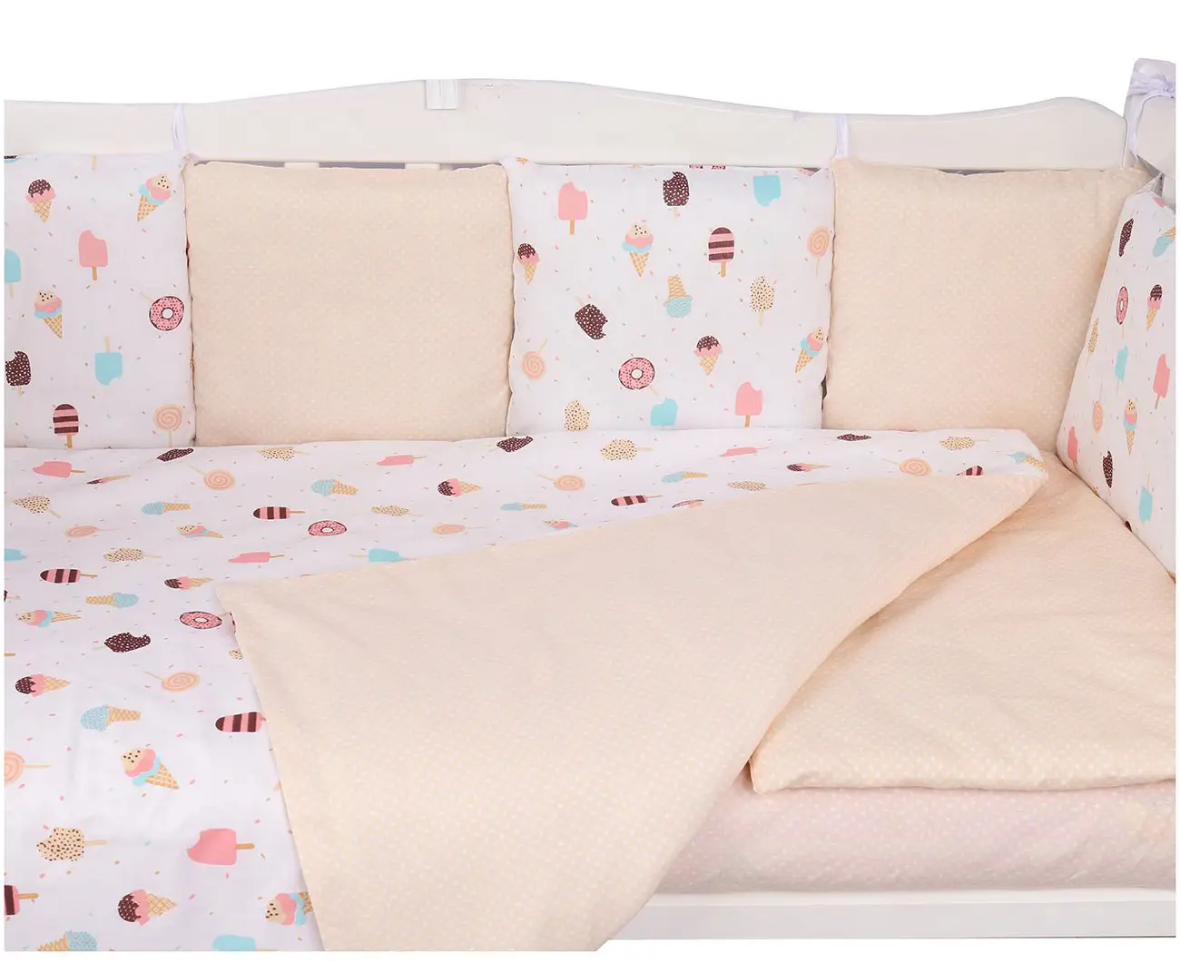 Создатели комплекта позаботились о наивысшем качестве используемых материалов – 100% безопасный и проверенный временем натуральный хлопок. Используемые ткани устойчивы к частым стиркам, не линяют и долго сохраняют первоначальный внешний вид.