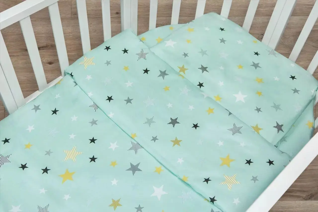 Комплект в кроватку 3 предмета AmaroBaby Baby Boom Россыпь звёзд, мята, бязь