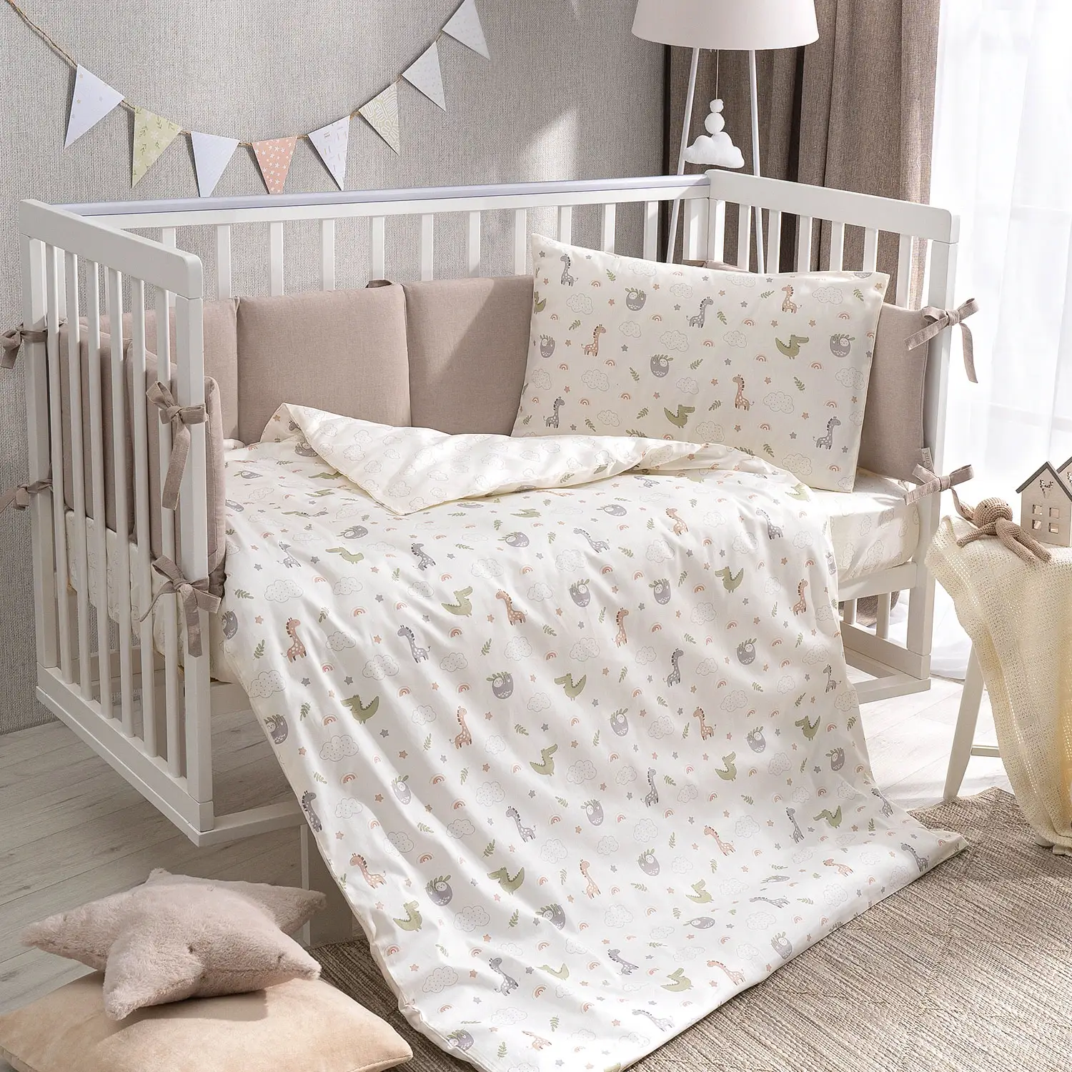 Нежные пастельные тона и забавные персонажи создадут сказочное настроение у малыша перед сном. Такой игривый дизайн понравится даже самым маленьким. Сатин гладкий на ощупь и приятный к телу - это делает его идеальным выбором для детского постельного белья, а блестящая поверхность придает комплекту элегантный и роскошный вид. Кроме того, он гипоаллергенный и отлично пропускает воздух, что позволяет коже ребенка дышать, и не вызывает раздражения. Постельное белье подходит для кроватки новорожденного со спальным местом 120х60 см. Двусторонний пододеяльник выгодно сочетается и с наволочкой, и с простыней. Пододеяльник на молнии легче надевать, при этом застежка сделана так, чтобы ребенок не смог случайно задеть ее ножкой или ручкой.