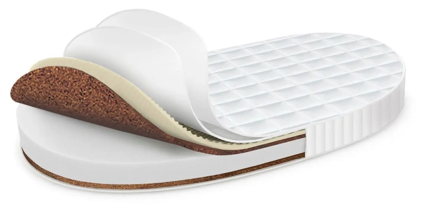 100% натуральный материал кокосовая койра – один из самых упругих и эластичных наполнителей. Он идеально поддерживает позвоночник крохи во время сна, занимая лидирующую позицию среду наполнителей любых матрасов. Две стороны матраса разной степени жёсткости.