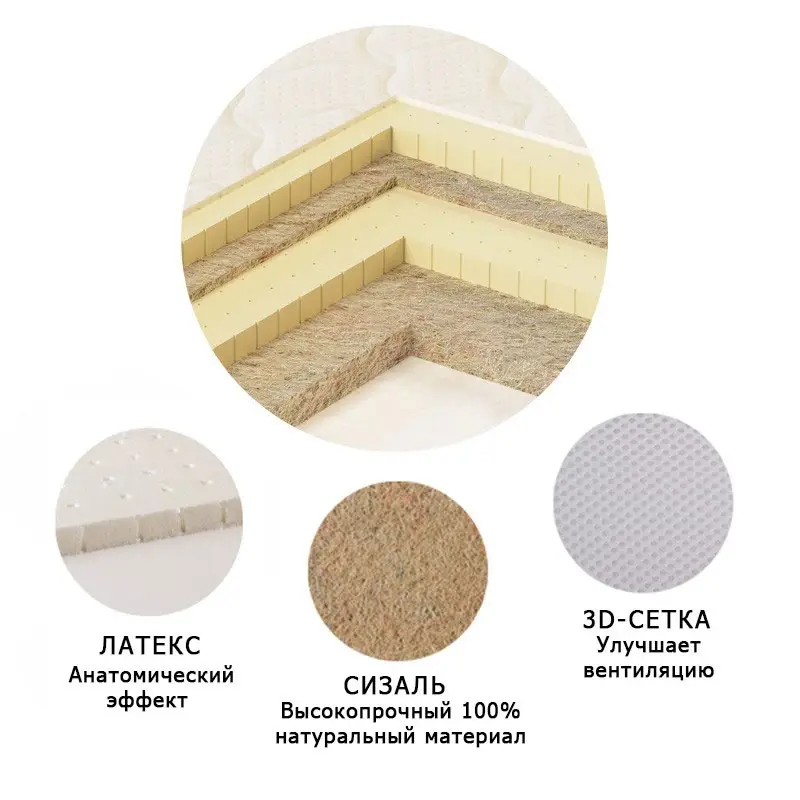 Универсальный беспружинный матрас премиум-класса. В модели используется сочетание классических натуральных материалов – анатомического латекса и сизаль.
