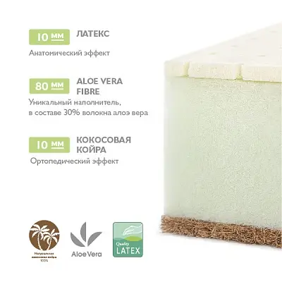 - основа матраса — Aloe Vera Fibre, новейшая разработка, позволившая объединить преимущества натуральных и инновационных материалов;