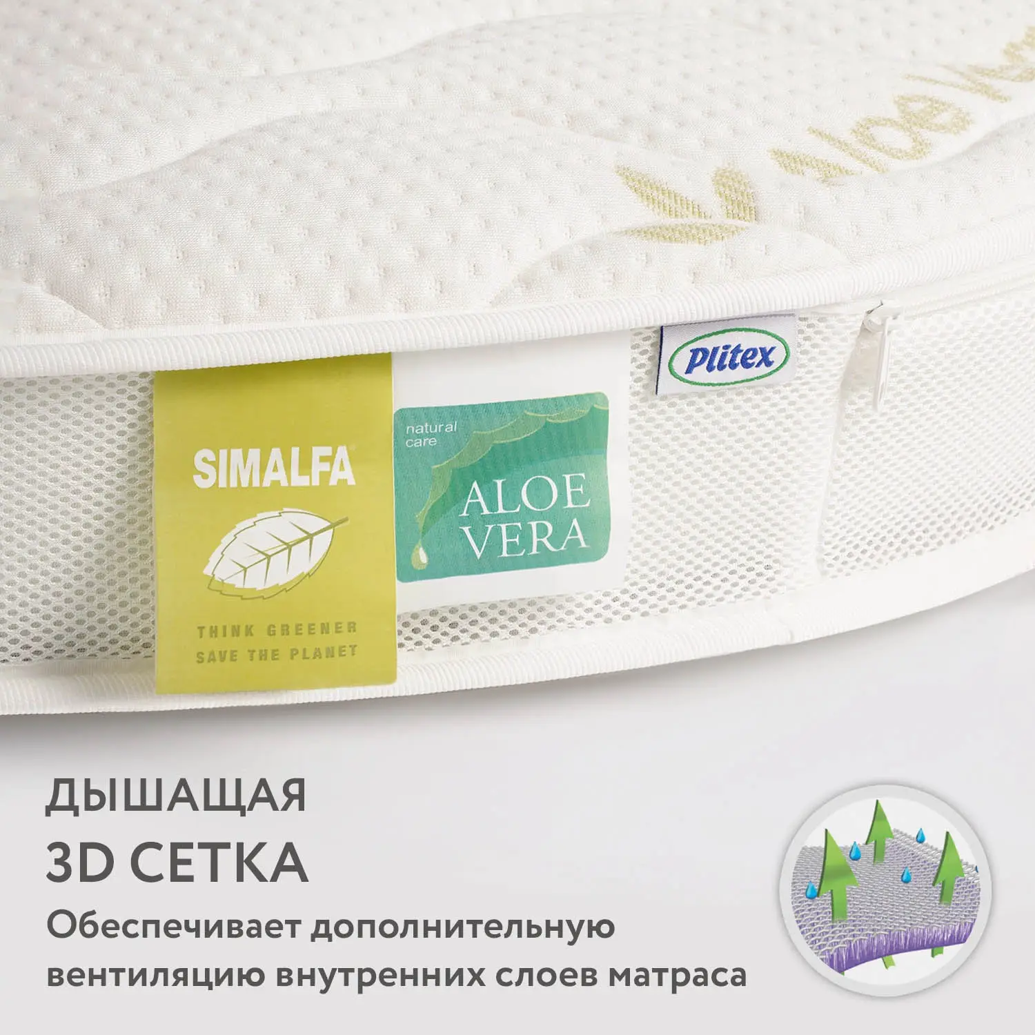 Детский матрас Plitex Aloe vera Semi-oval специально разработан для кроваток с закруглёнными углами и обеспечивает здоровый и комфортный с...