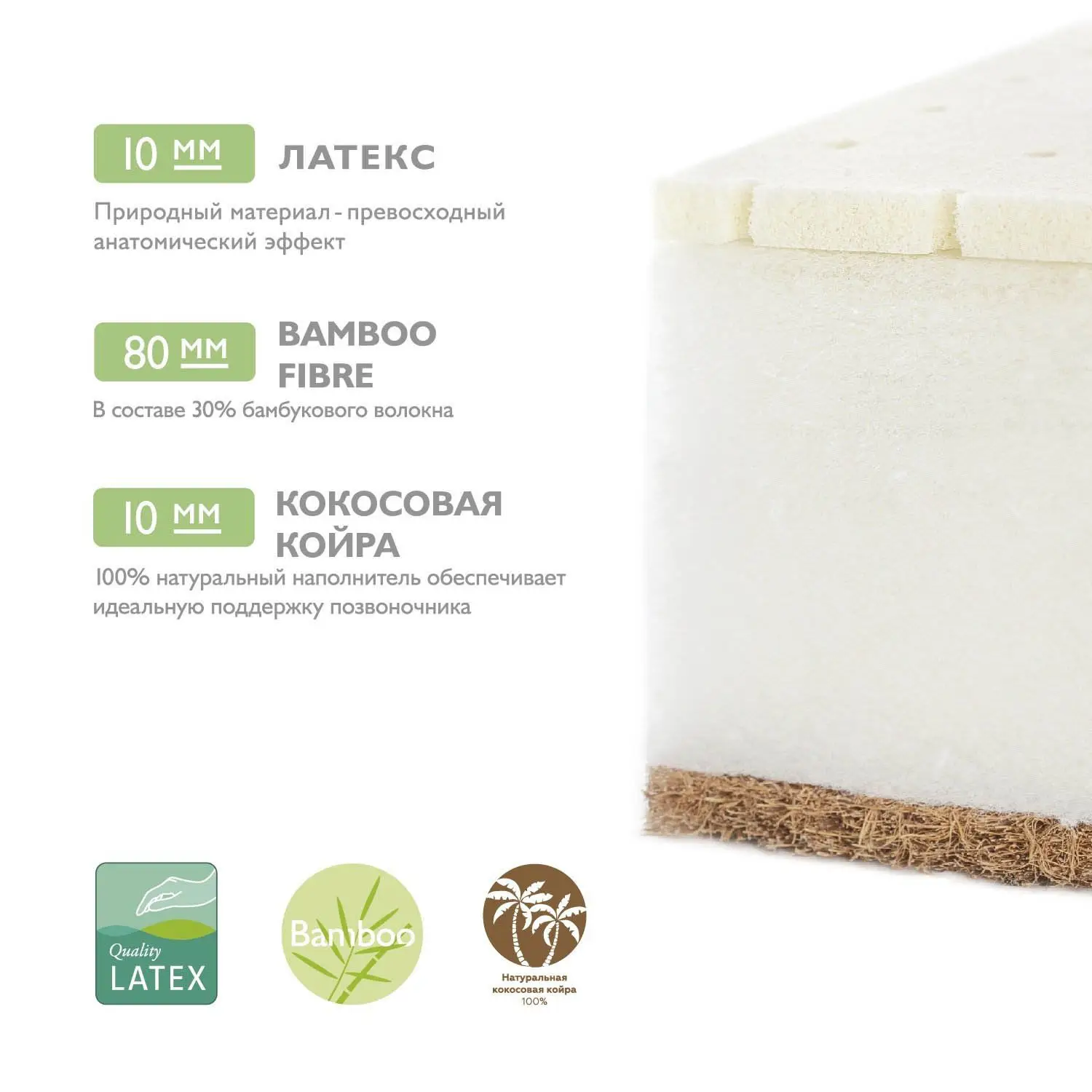 Детский матрас Bamboo Lux — идеальное решение для здорового сна вашего ребёнка. Благодаря антибактериальным свойствам бамбука, он обеспечи...