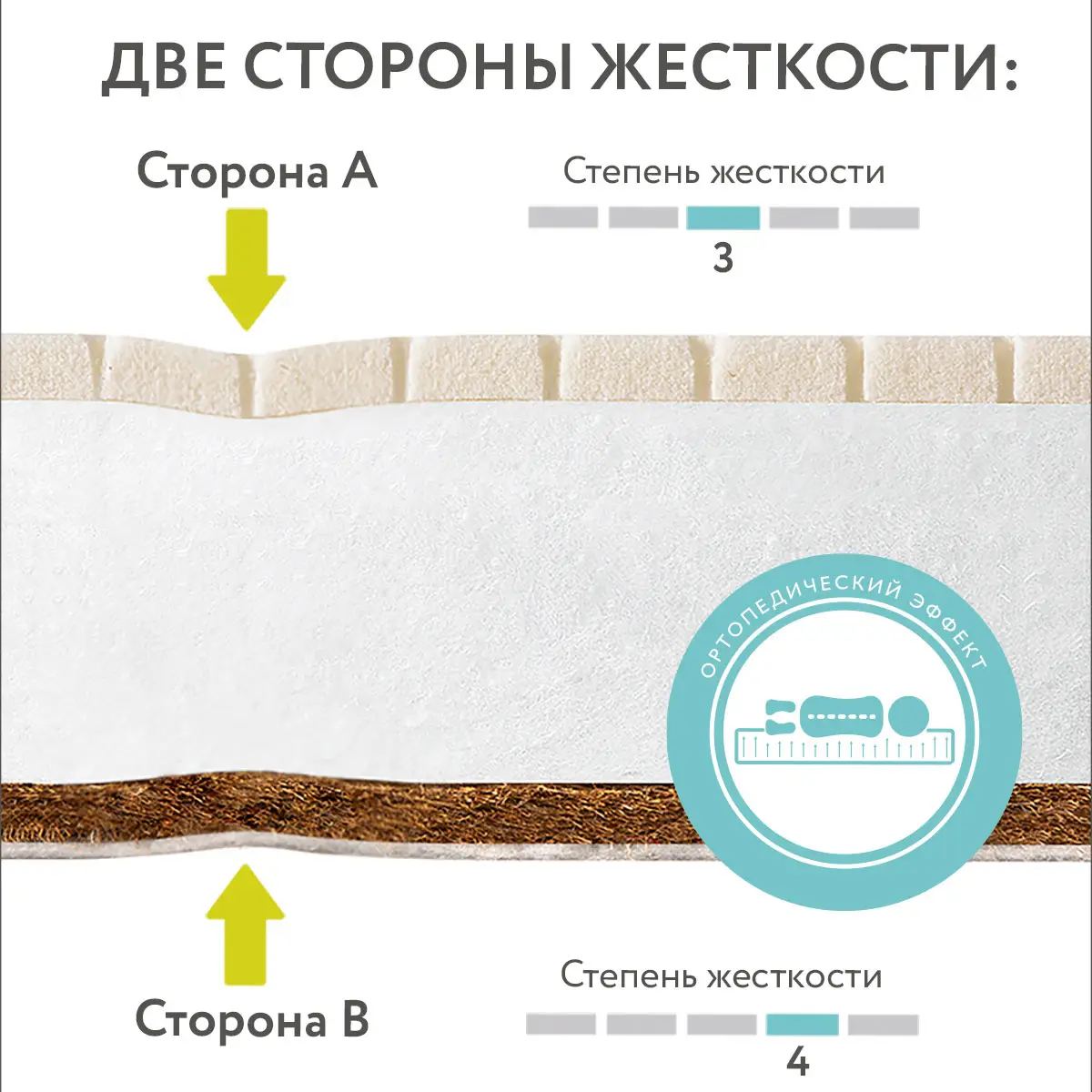 | Тип матраса | Двусторонний, с различной жёсткостью сторон |
