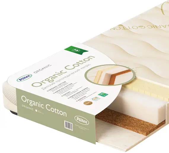 Беспружинный ортопедический матрас премиум-класса Plitex Organic Cotton для детей от 0 до 3-4 лет.