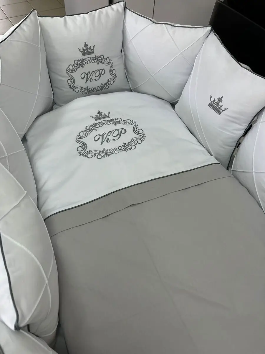 Incanto Комплект 6 предметов в кроватку подушками "VIP" белый, серый