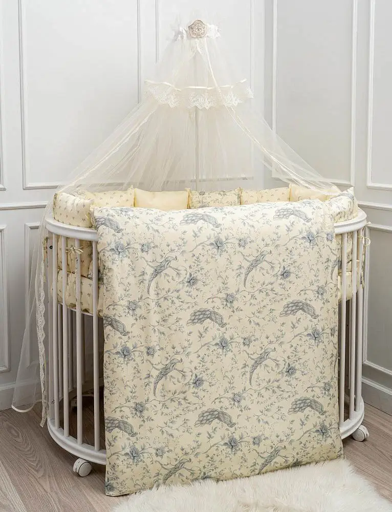 Комплект Lappetti для овальной и круглой кроватки, Райский сад, 6 предметов, сливочный