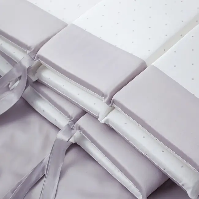- для дополнительного удобства бампер сделан из отдельных частей со съёмным чехлом. Теперь вы легко можете стирать только внешнюю часть бампера, не затрагивая наполнитель. Мы позаботились о том, что комплект прослужил вам как можно дольше. Для этого мы используем экологически чистый упругий наполнитель Hollcon (Холлкон), который прекрасно сохраняет форму;