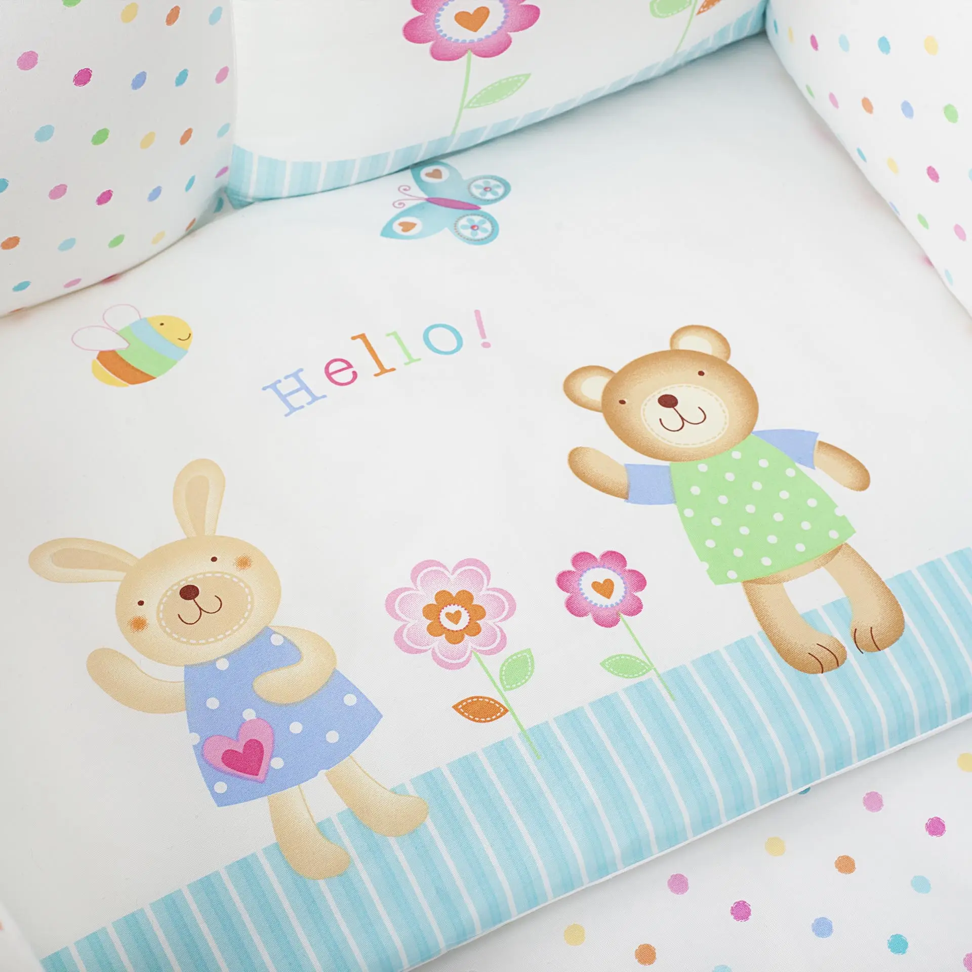 Комплект Глория – это стильное дизайнерское решение, которое понравится и мальчику, и девочке. Весенняя цветовая гамма и дружелюбные персонажи создадут в детской спальне особенную атмофсеру.