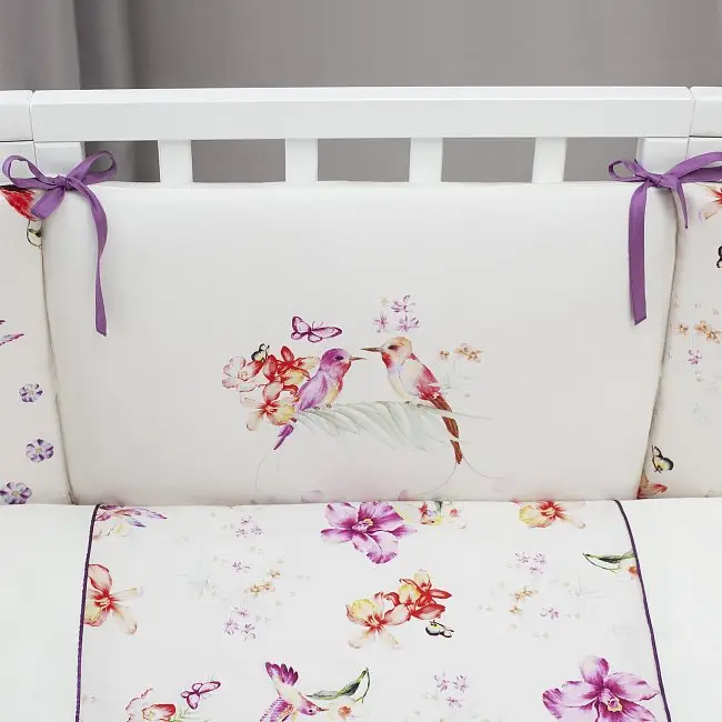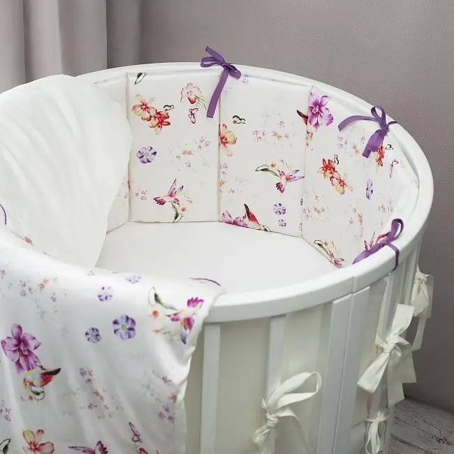 Модель продумана до мелочей: две простыни разных размеров и защита из отдельных декоративных подушечек допускают различные варианты сочетания и позволяют использовать комплект в кровати-трансформере. Специально для круглых и овальных кроваток разработана эксклюзивная закругленная форма подушки и одеяла, а функциональность дополнительного кармана уже оценили многие родители.