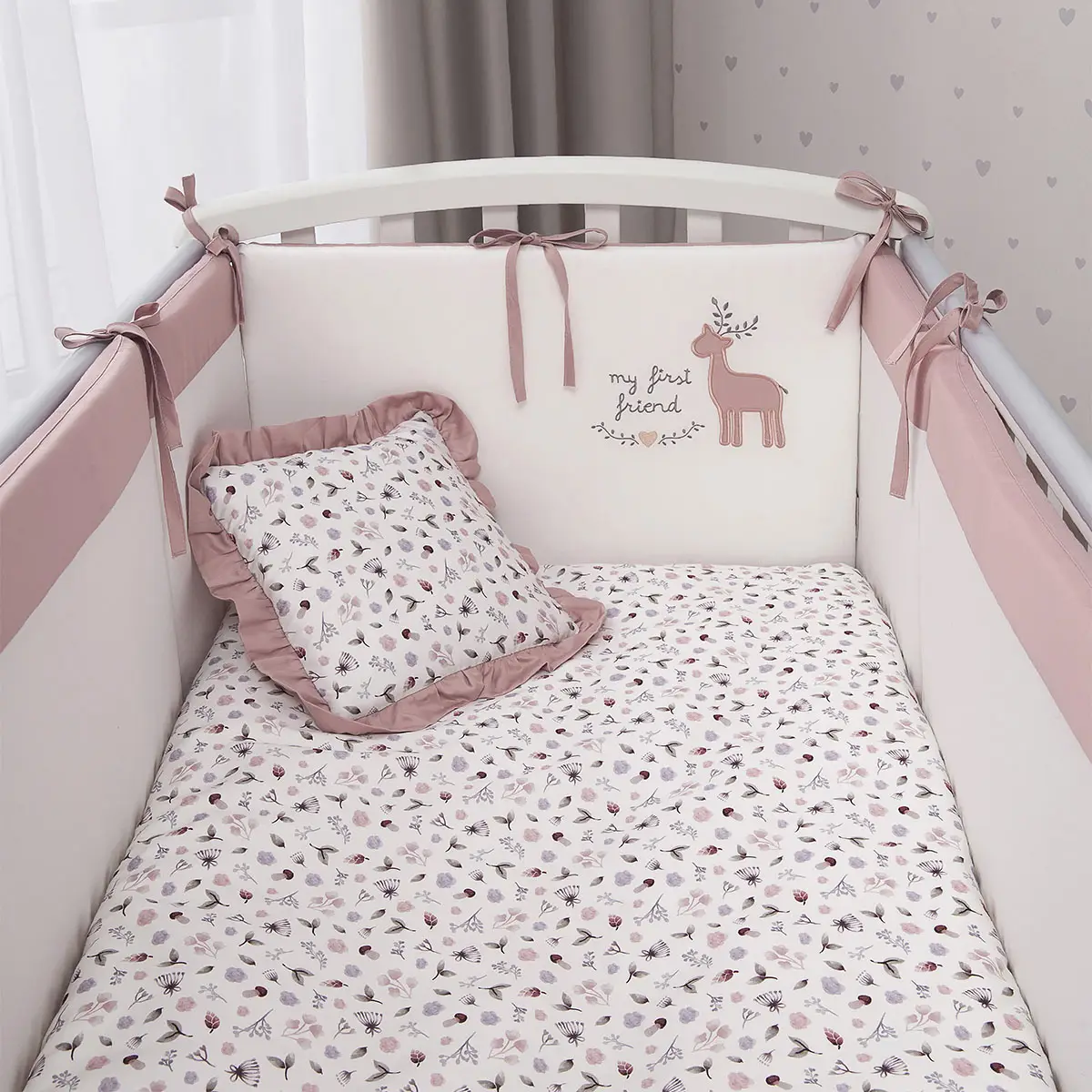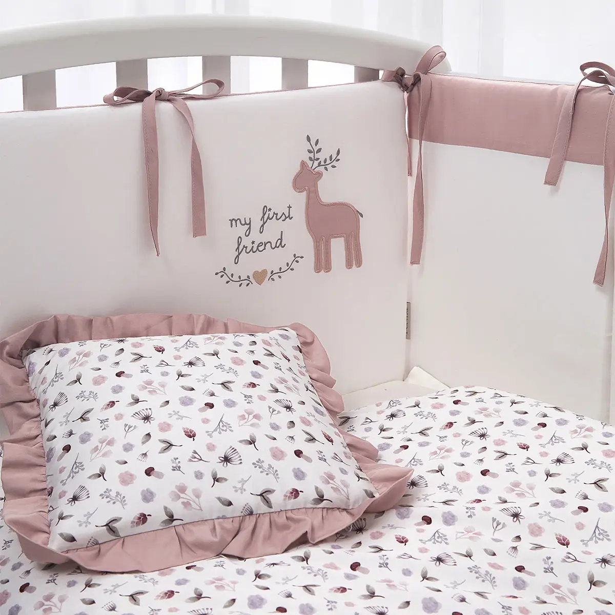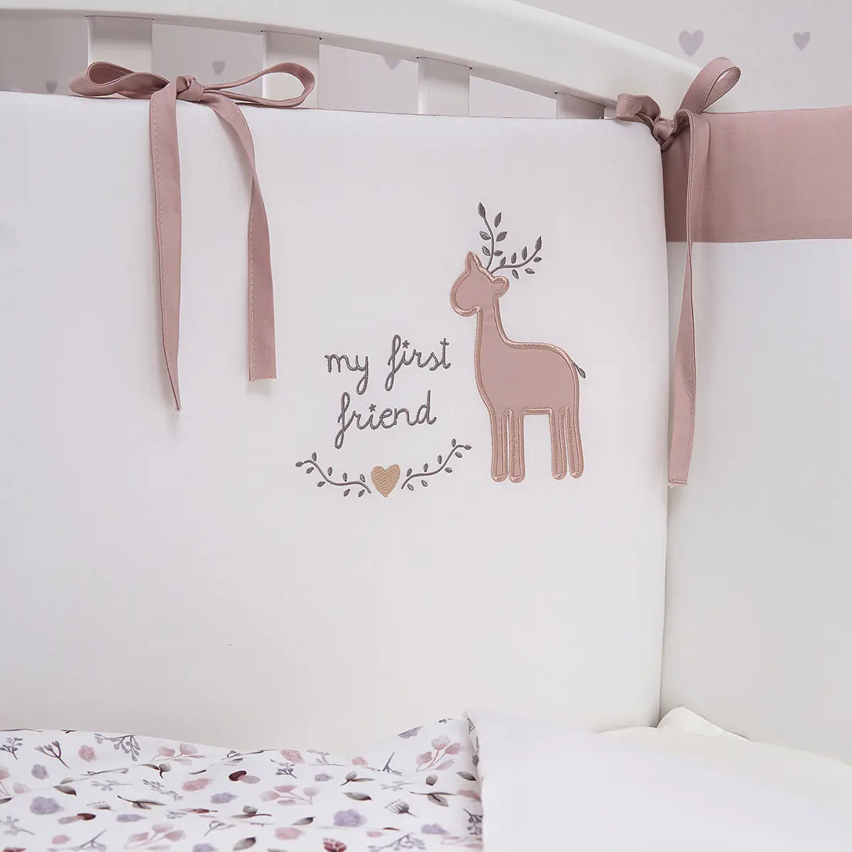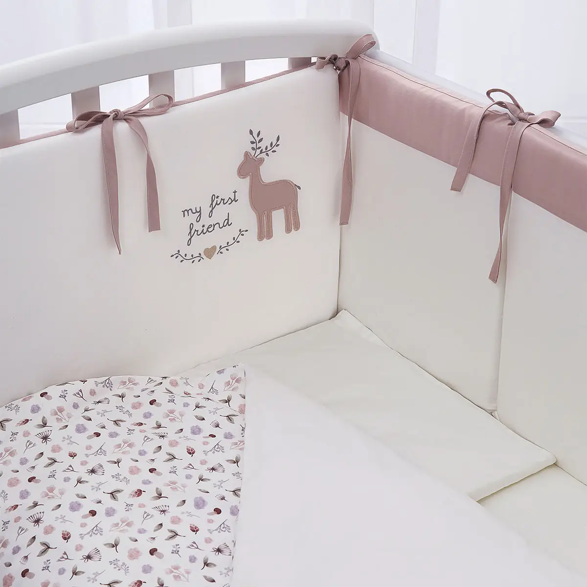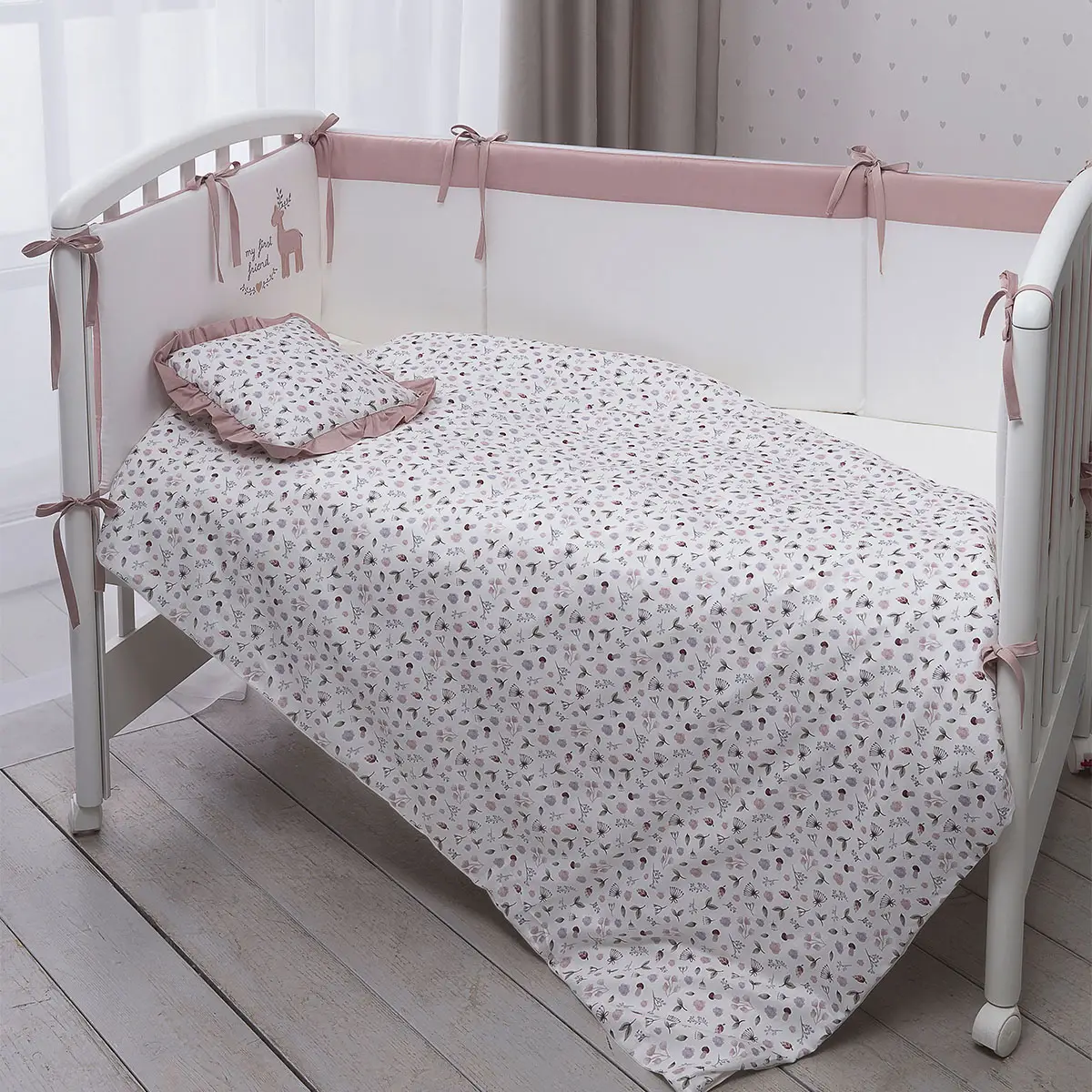 - бортик составной, изящные завязки и вышивка выглядят утонченно, при этом можете не сомневаться в их надёжности проверенное качество пошива — гарантия того, что комплект прослужит долго;