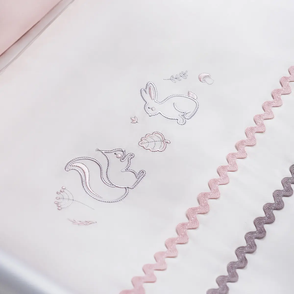 Дизайн комплекта продуман до мелочей – пастельные оттенки впишутся практически в любой интерьер. После пробуждения малыш наверняка найдёт себе развлечение и будет с интересом рассматривать рисунок на пододеяльнике, выполненный в виде вышивки.