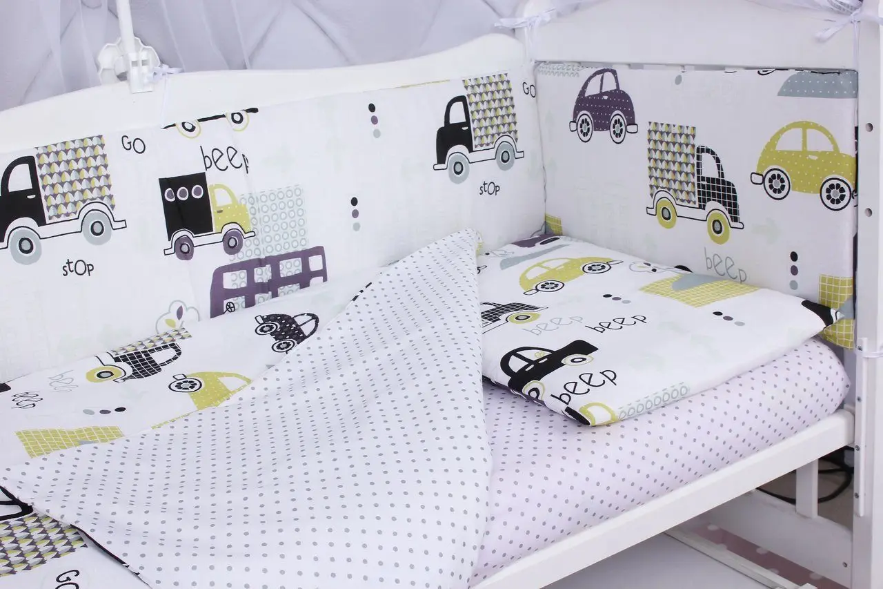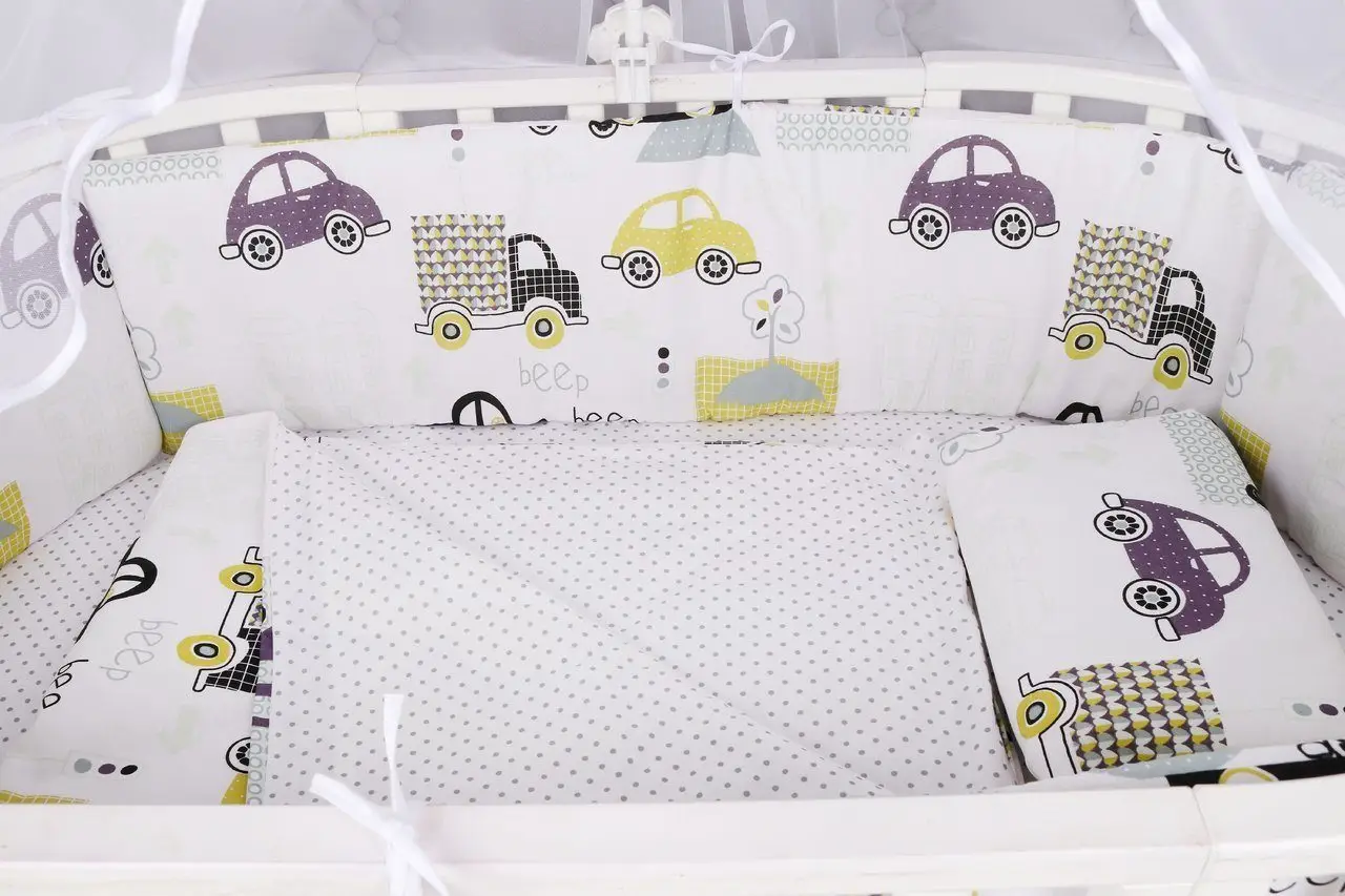 - бортик комплекта постельного белья представлен в виде 4 подушек со съёмными наволочками на молнии;