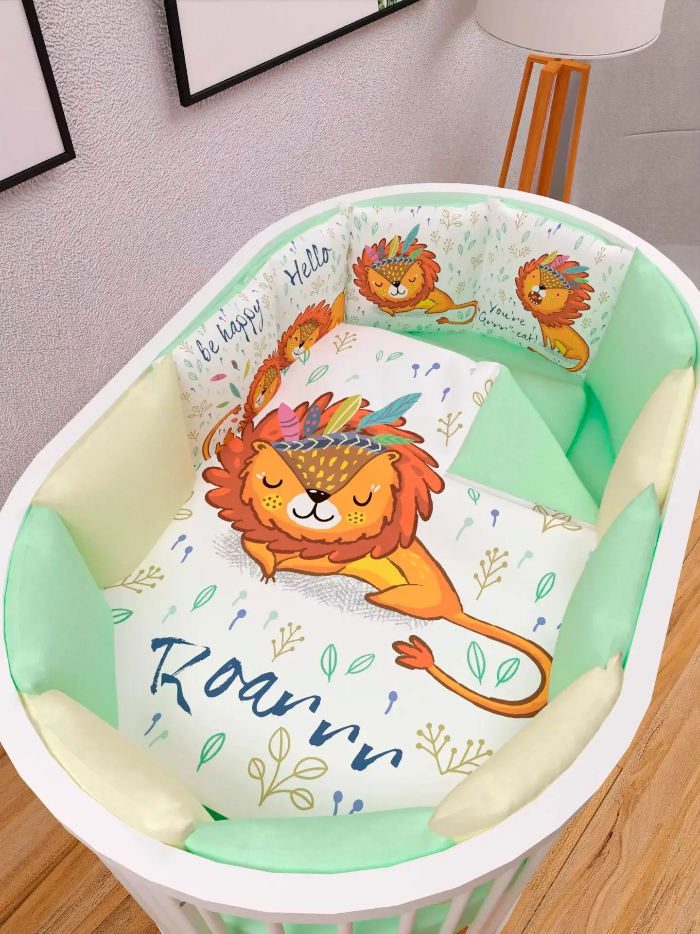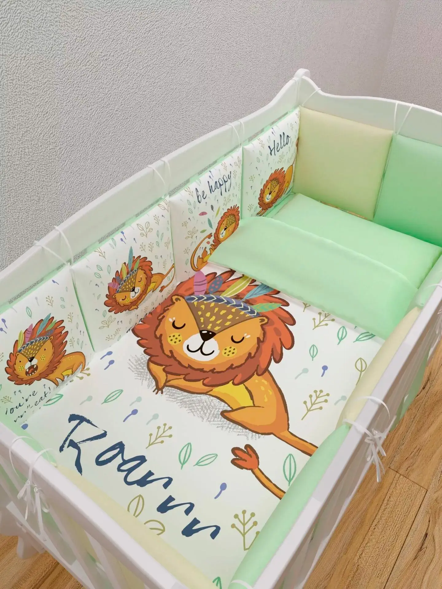 Комплект в кроватку AmaroBaby Baby Lion 17 предметов: 5+12 подушек бортиков, салатовый