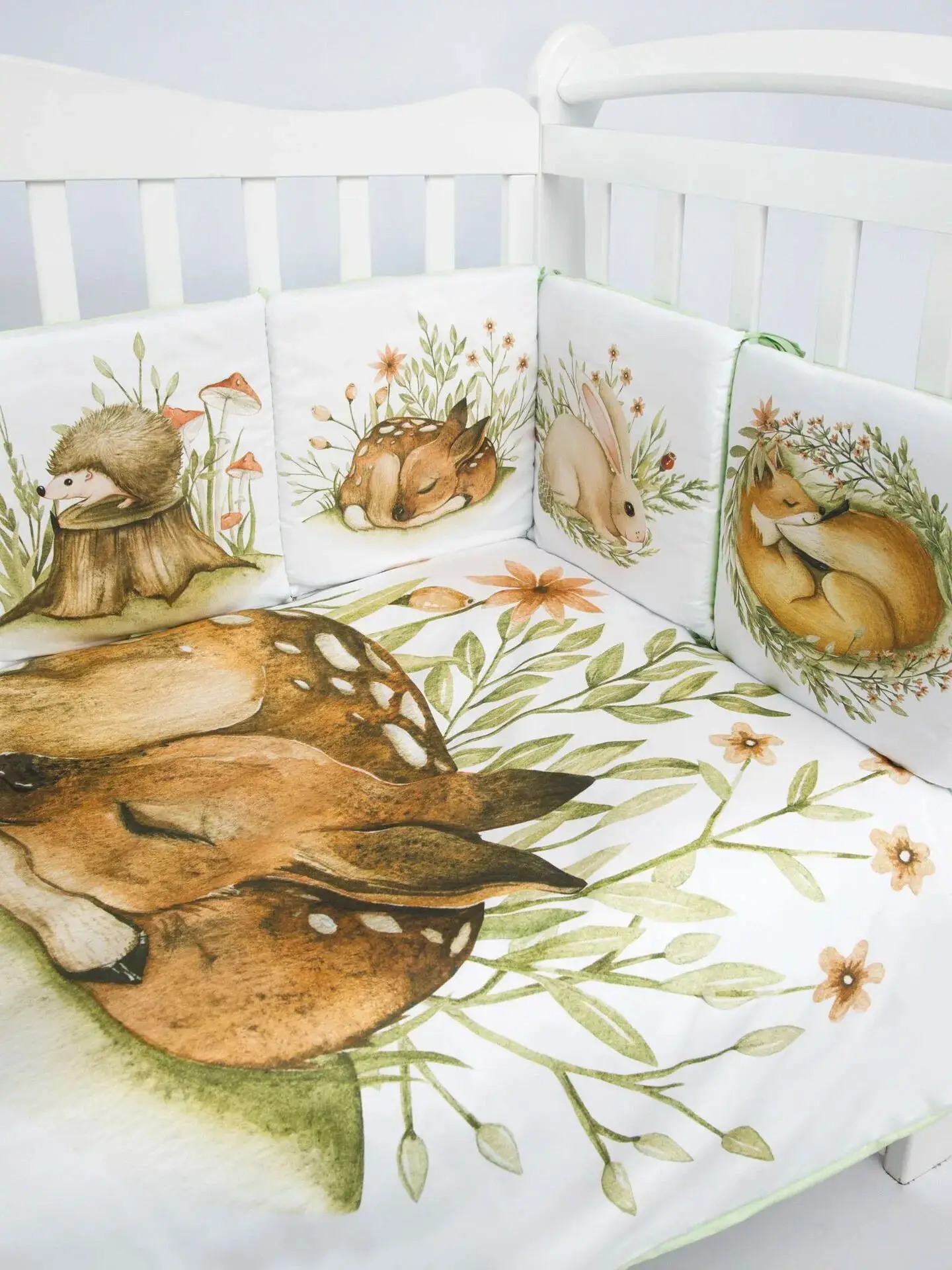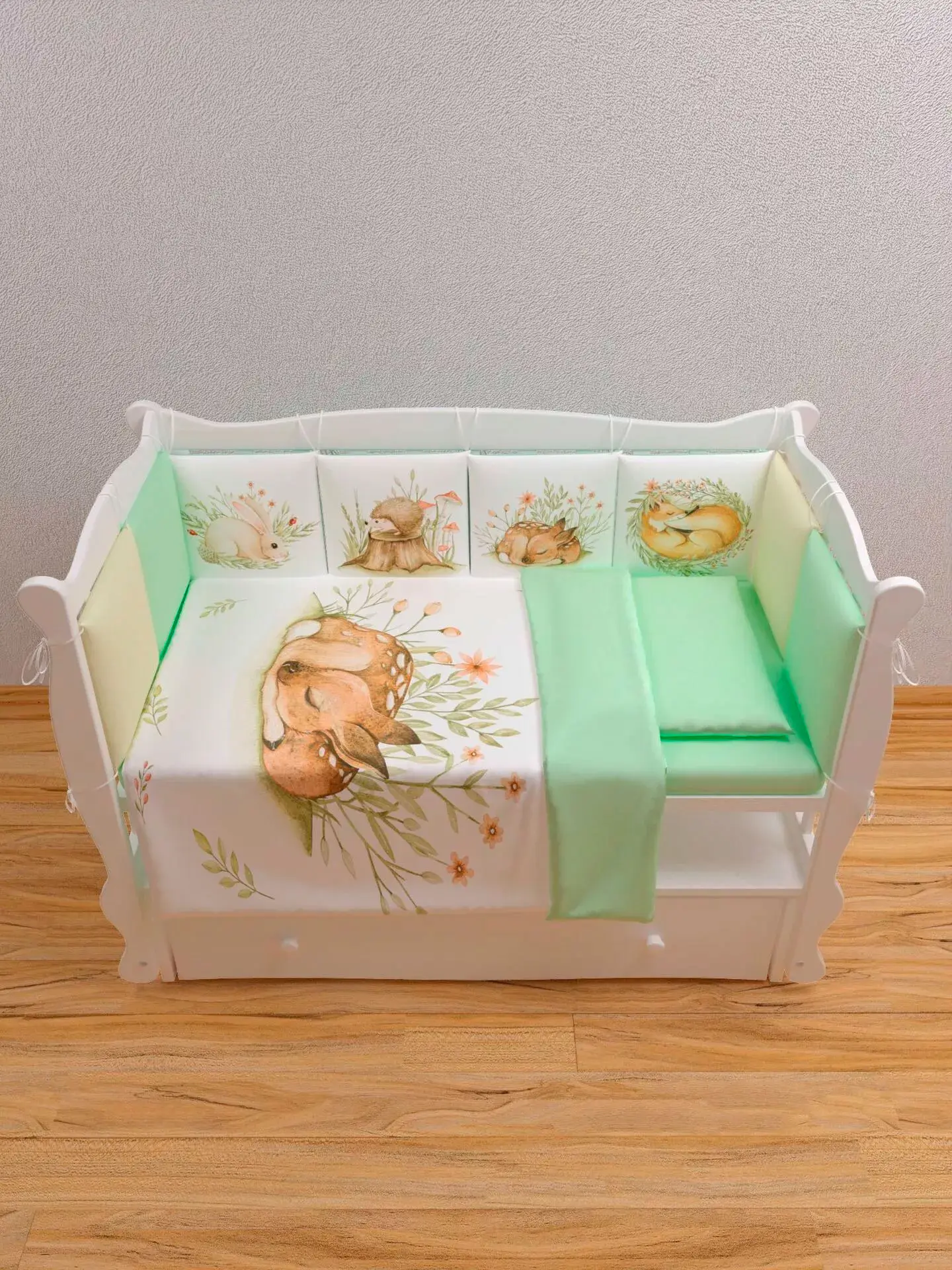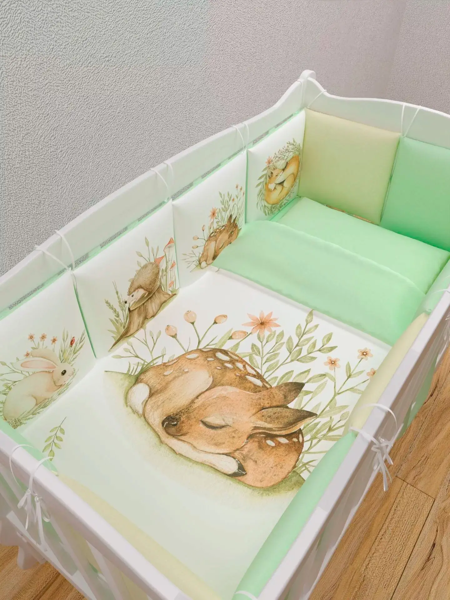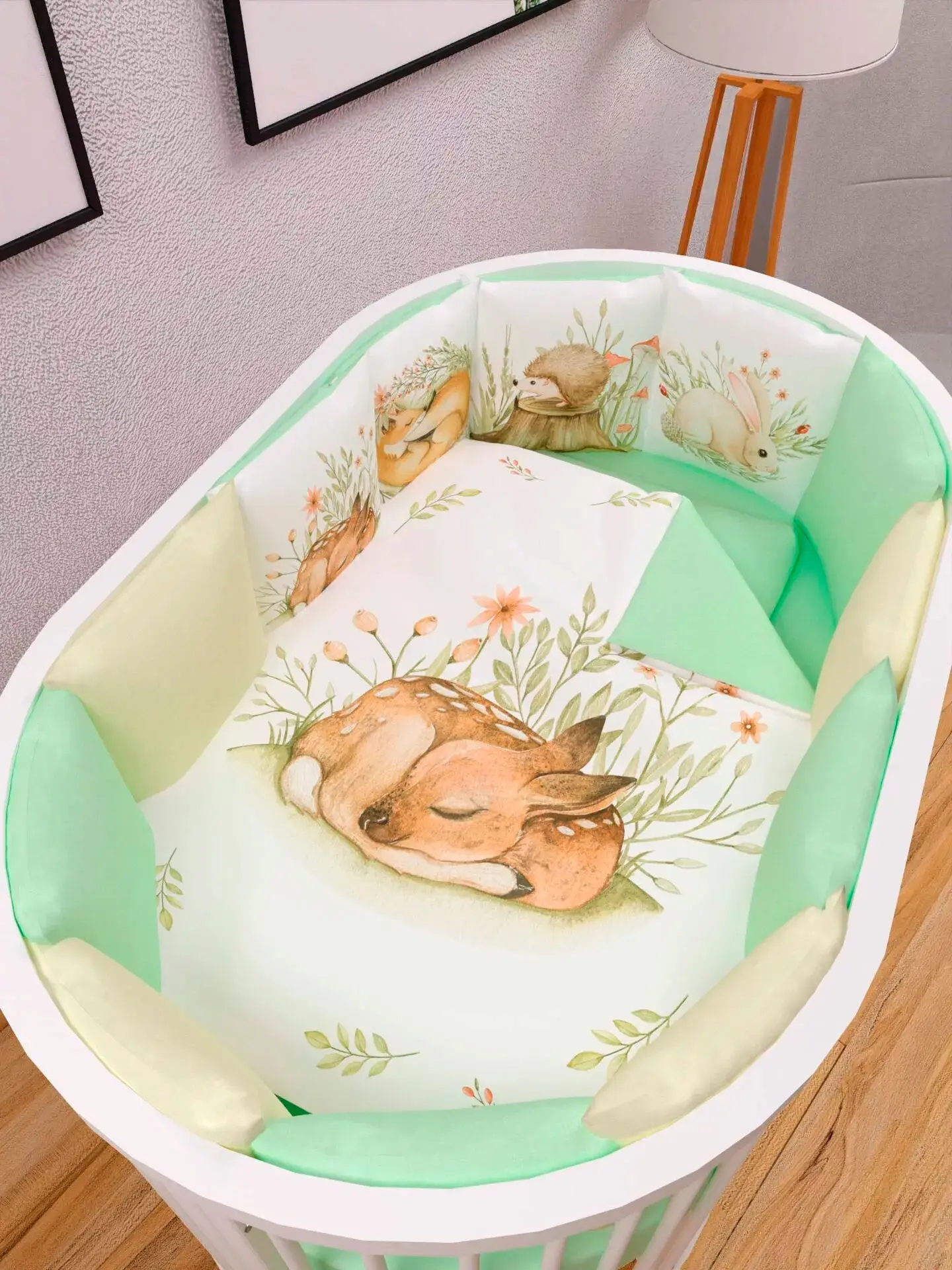 Комплект в кроватку AmaroBaby Sleepy Forest 17 предметов: 5+12 подушек бортиков, салатовый
