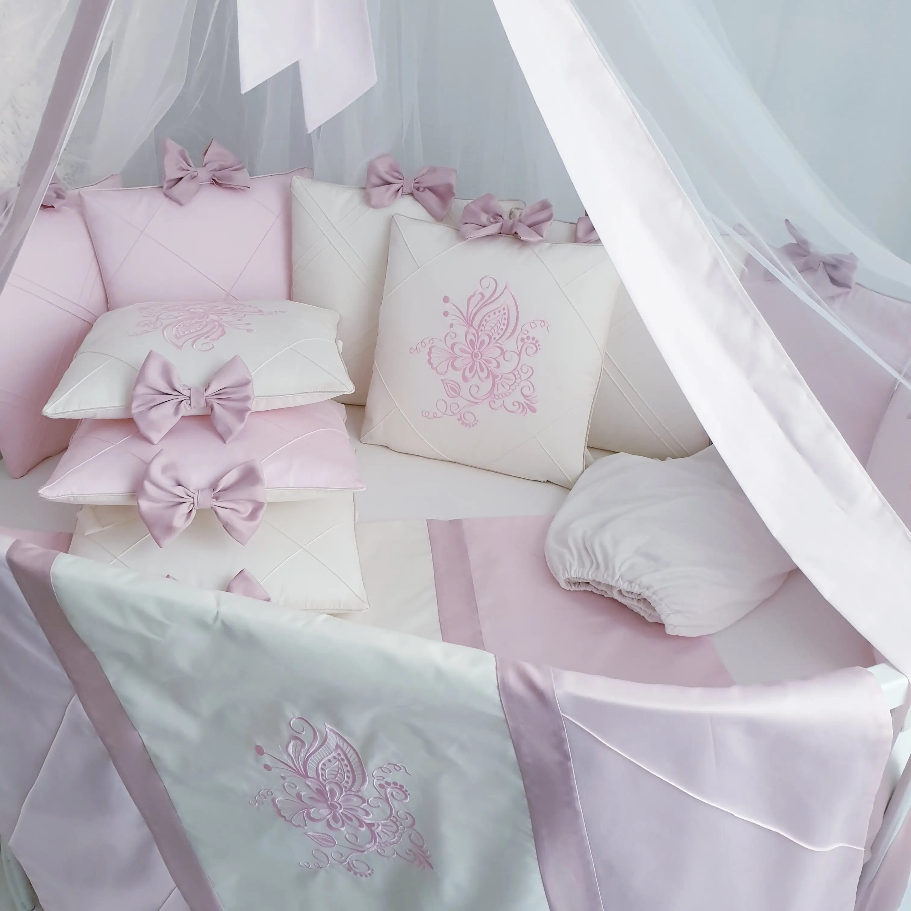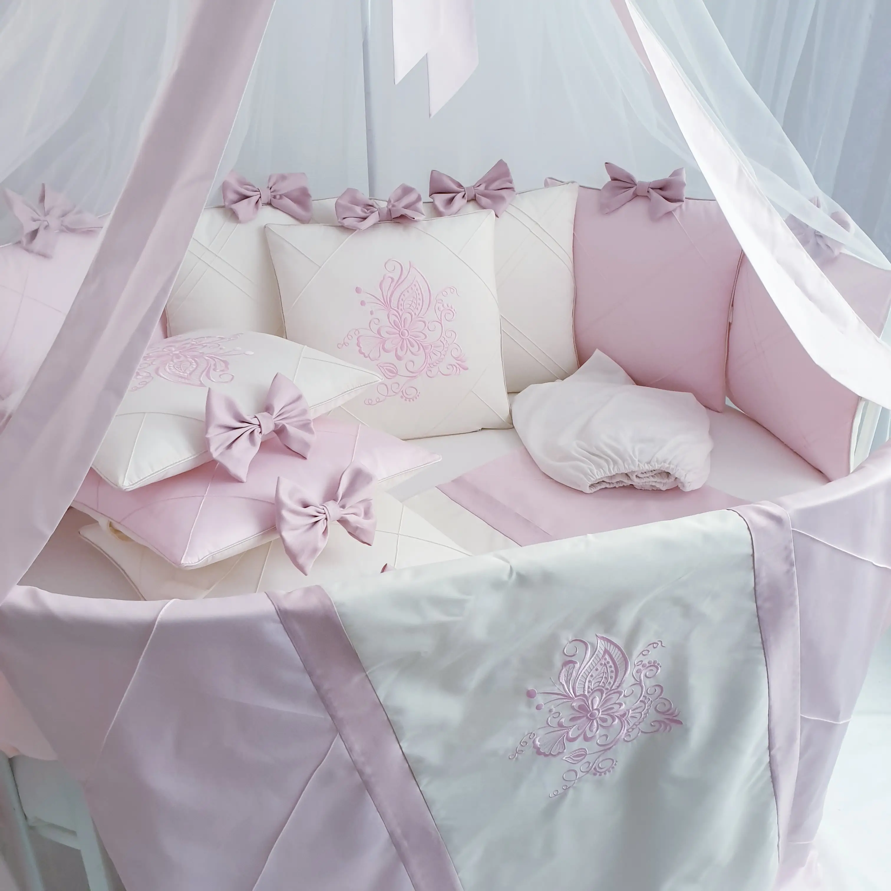 Набор в кроватку для новорождённых Eco Line Mary 15 предметов розовый