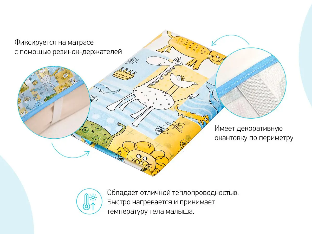 Клеёнка-наматрасник с резинками-держателями ROXY KIDS Серия ZOO желто-синий