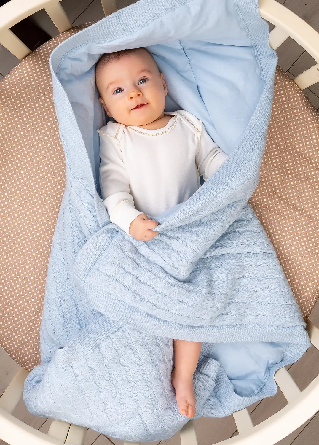Детский плед от бренда Осьминожка подойдёт для праздничной выписки из роддома осенью или зимой.
