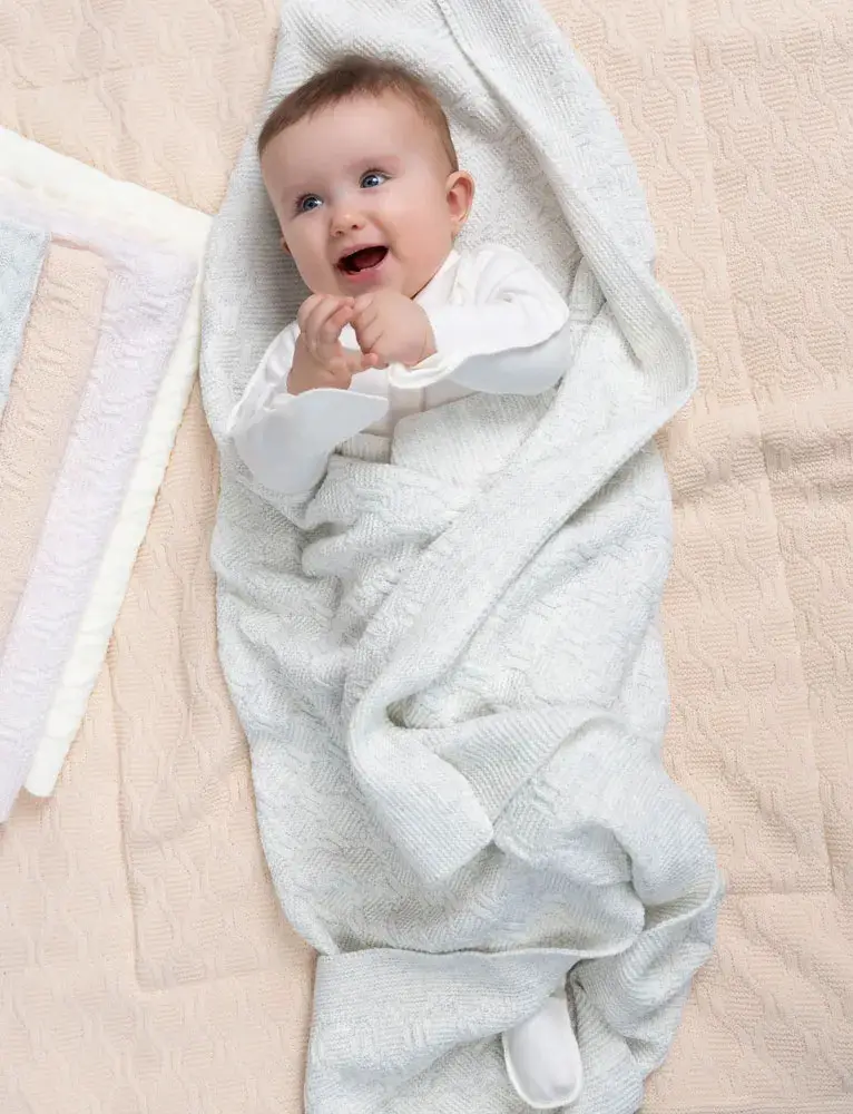 Одеяло-плед от бренда Осьминожка – мягкий, тёплый и очень прочный материал. Вязаное полотно сверху, с низу подклад – 100 % кулир, холкон наполнитель. Возьмите плед в дорогу, накройте малыша во время прогулки в коляске и используйте во время кормления.