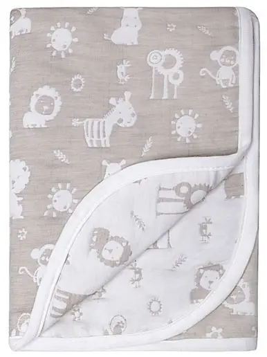 Это красивый и практичный аксессуар, который можно использовать и дома как одеяло, и для пеленания, и на прогулке. Натуральный хлопок Eco Soft Cotton по внешним сторонам пледа деликатно касается кожи ребенка, хорошо пропускает воздух и поддерживает комфортную температуру. Специальный способ создания узора без окрашивания — залог того, что цвет останется неизменным после многократных стирок.