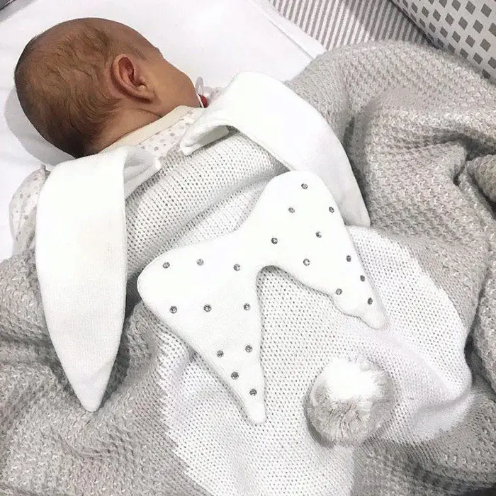 Плед Зайка ангел станет вашим главным помощником в уходе за малышом, уютным хранителем снов и идеальным стильным аксессуаром для путешествий и фотосессий.