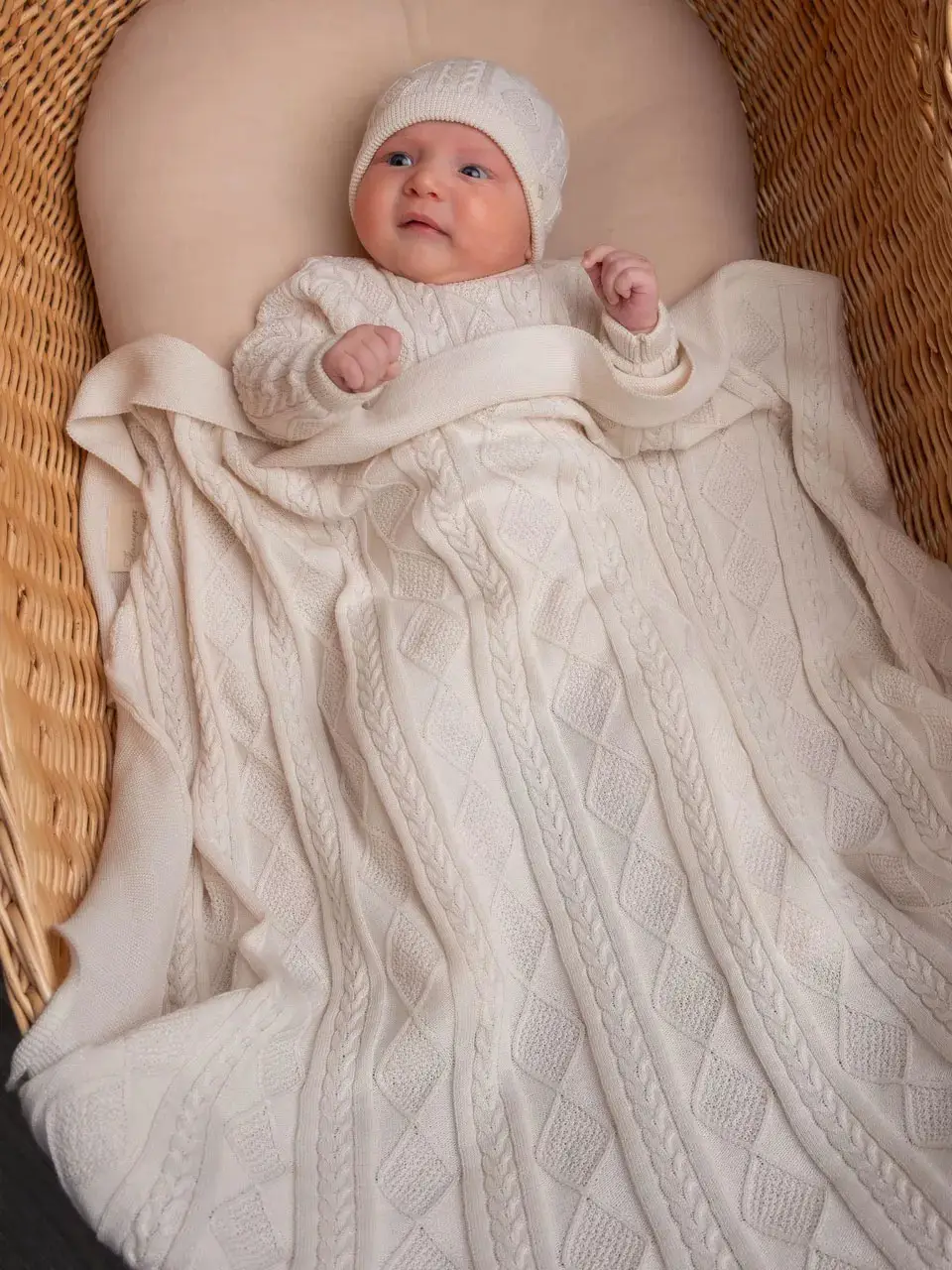 Плед и пояс "Наследник Выжанова" – это мягкий плед из 100% хлопка размером 90х90см и удобный пояс для фиксации, идеальный выбор для выписки из роддома.