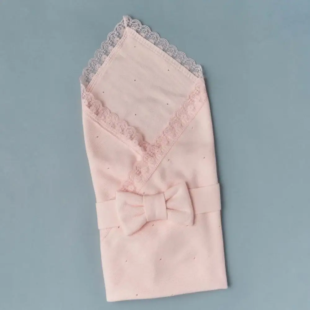 Плед кружевной + лента Little Star Лоренс лососевый 90х90 см